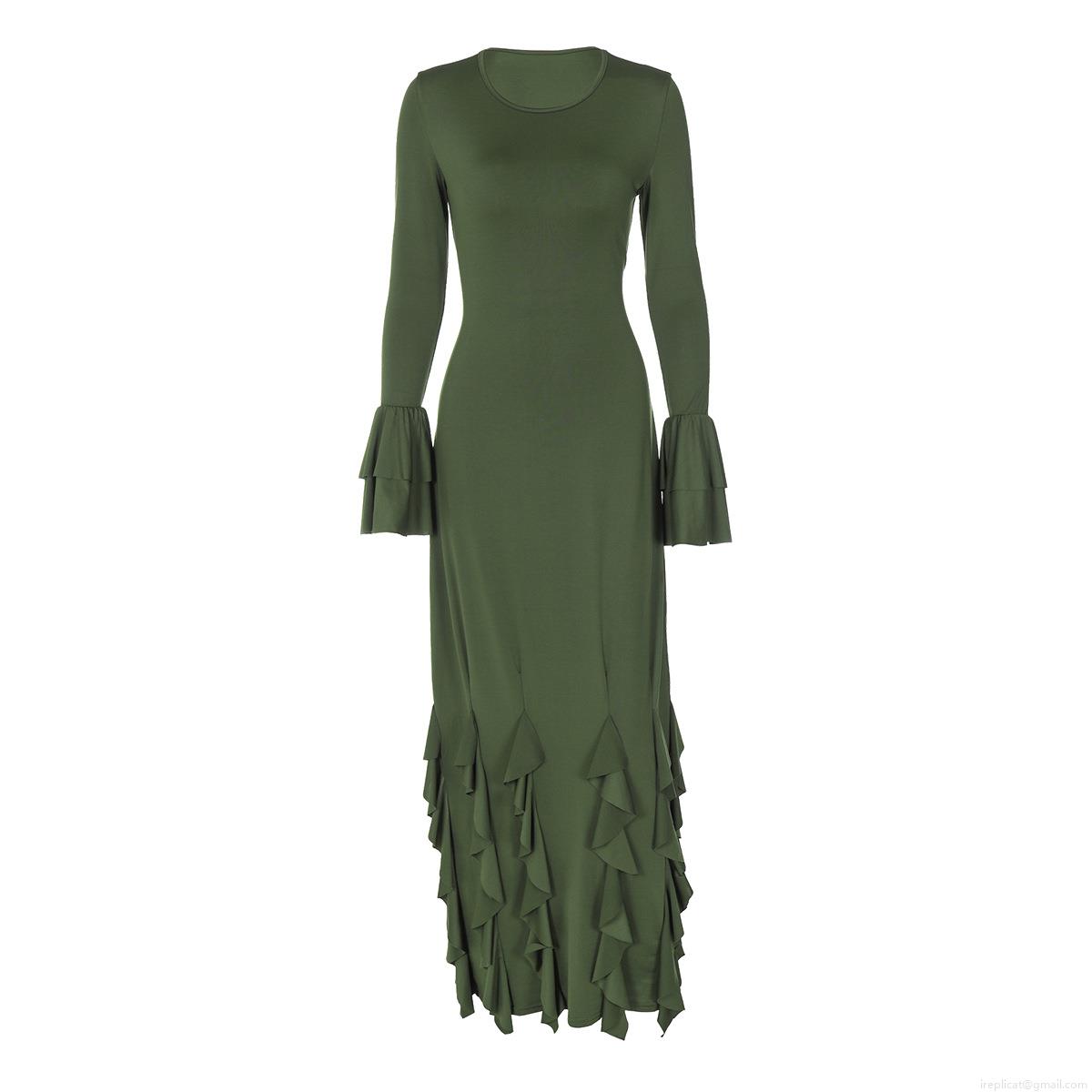 • Women's Elegant Solid Color Bodycon Maxi Dress Long Flare Sleeve Ruffle Fishtail Evening Party Dress With Back Tie Polyester Spandex Dress