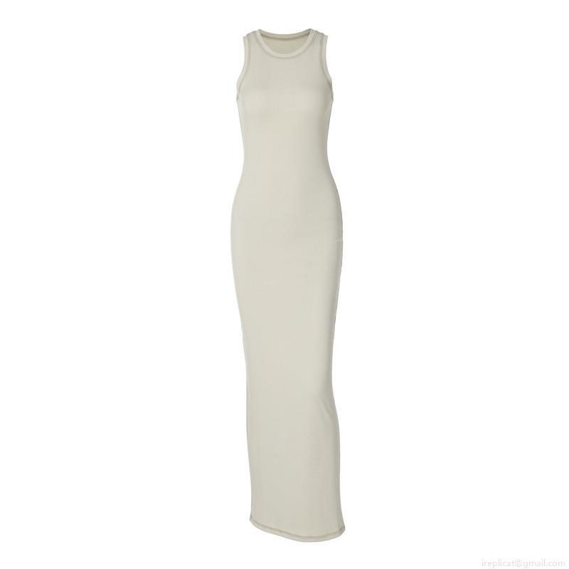 • Women's Elegant Solid Color Ribbed Knit Maxi Dress Slim Fit Sleeveless Crew Neck Bodycon Long Dress For Summer Daily Party