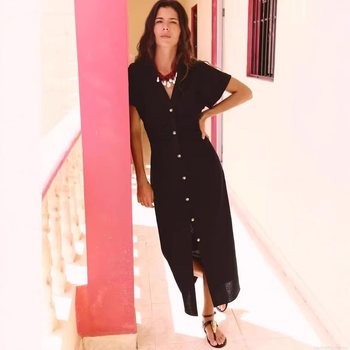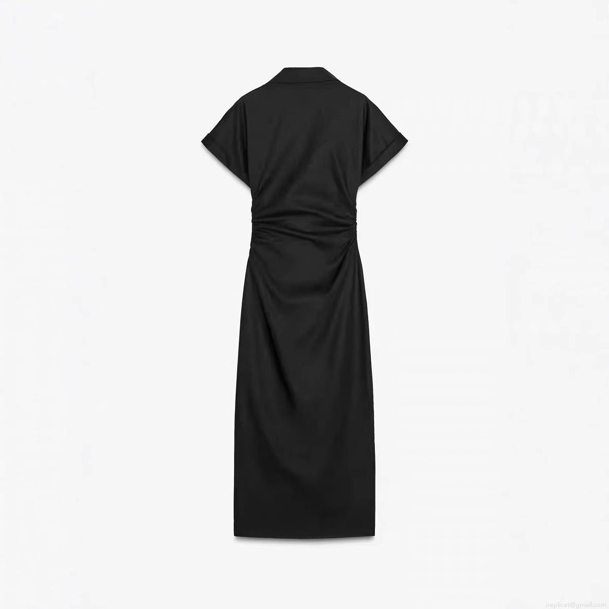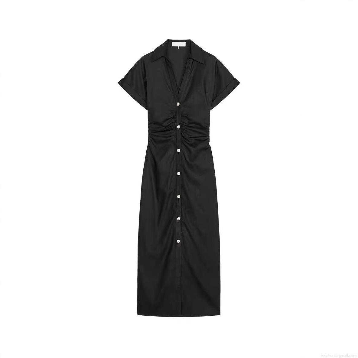 • Women's Elegant Solid Color Short Sleeve Shirt Dress Ruched Waist Button Down Slim Fit Maxi Dress For Summer Vacation Daily Wear