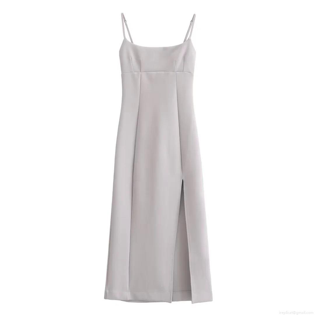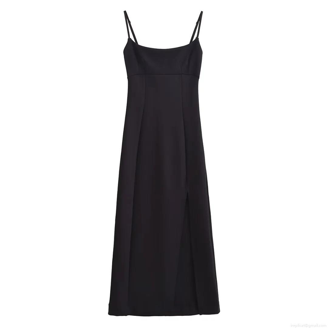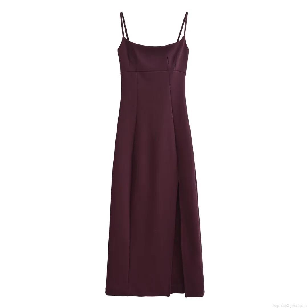 • Women's Elegant Solid Color Suspender Maxi Dress With Side Slit Polyester Sleeveless U-Neck Slim Fit Party Evening Long Dress For Ladies