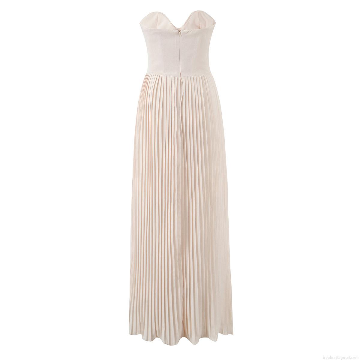 • Women's Elegant Strapless Pleated Maxi Dress Polyester Cotton Blend Slim Fit Back Zipper Evening Party Banquet Gown Socialite Long Dress