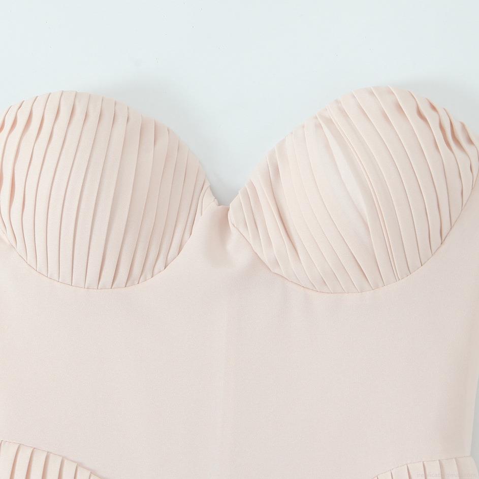 Solid Color, Pleats, Strapless, Accordion Pleats