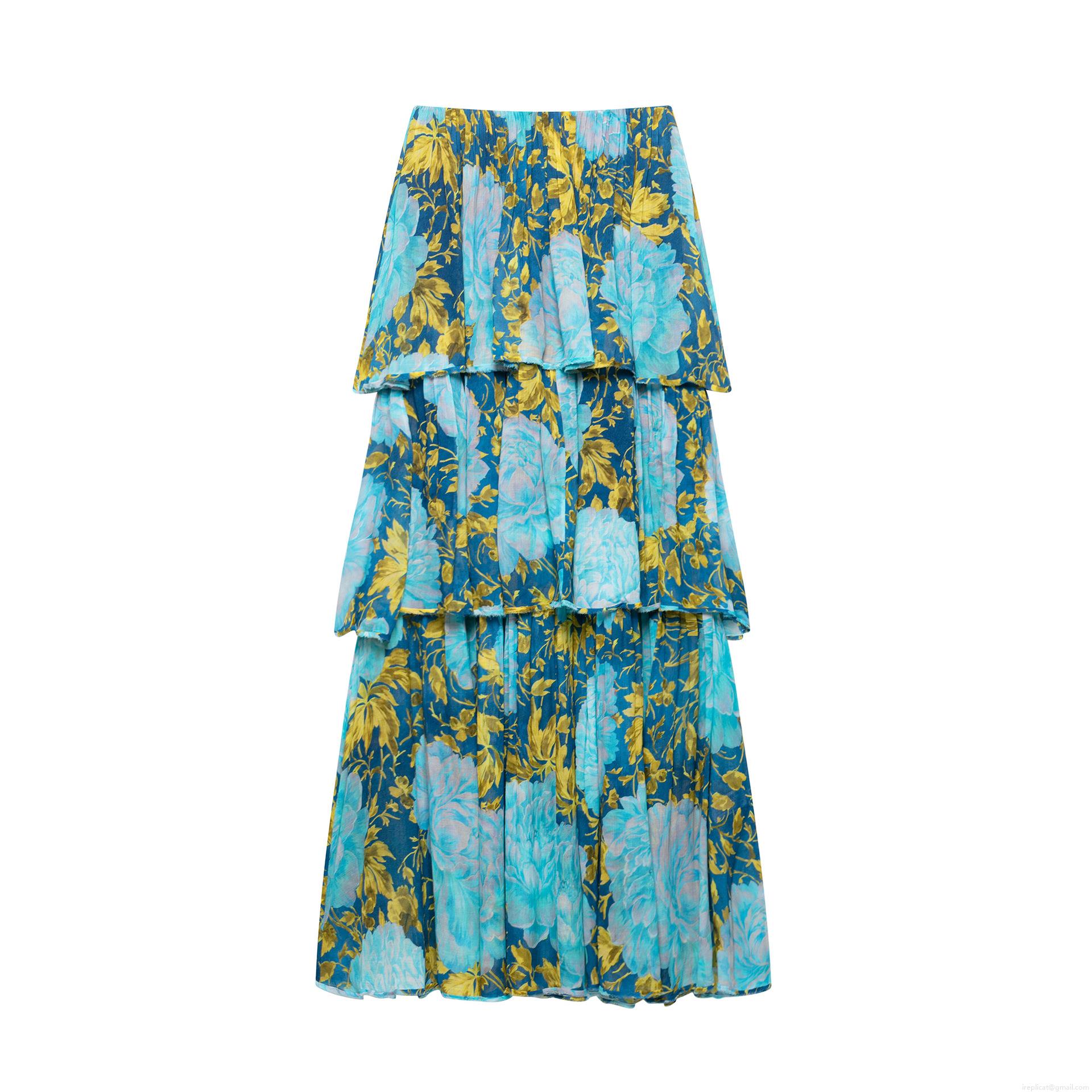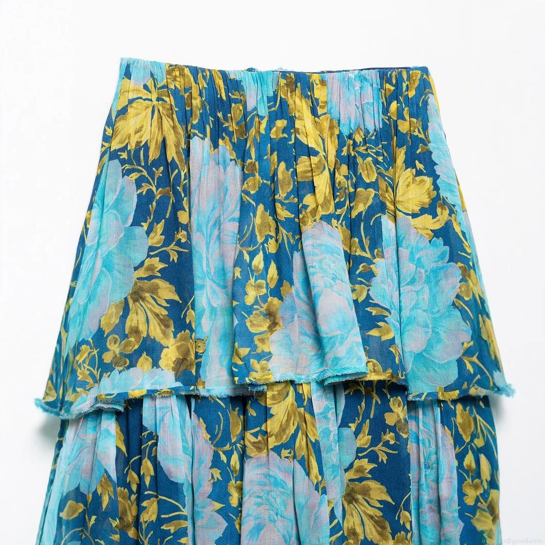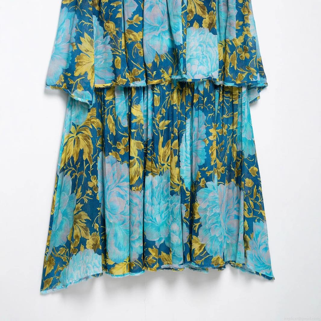Floral Pattern, Ruffles, Printing, Strapless, Layered Design, Cake Skirt