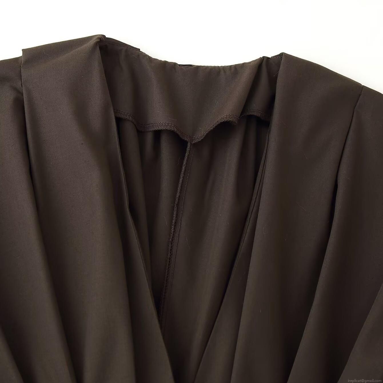 • Women's Elegant V Neck Maxi Dress Short Sleeve Tie Waist Pleated A-Line Solid Brown Polyester Spandex Long Dress for Summer Commute Party