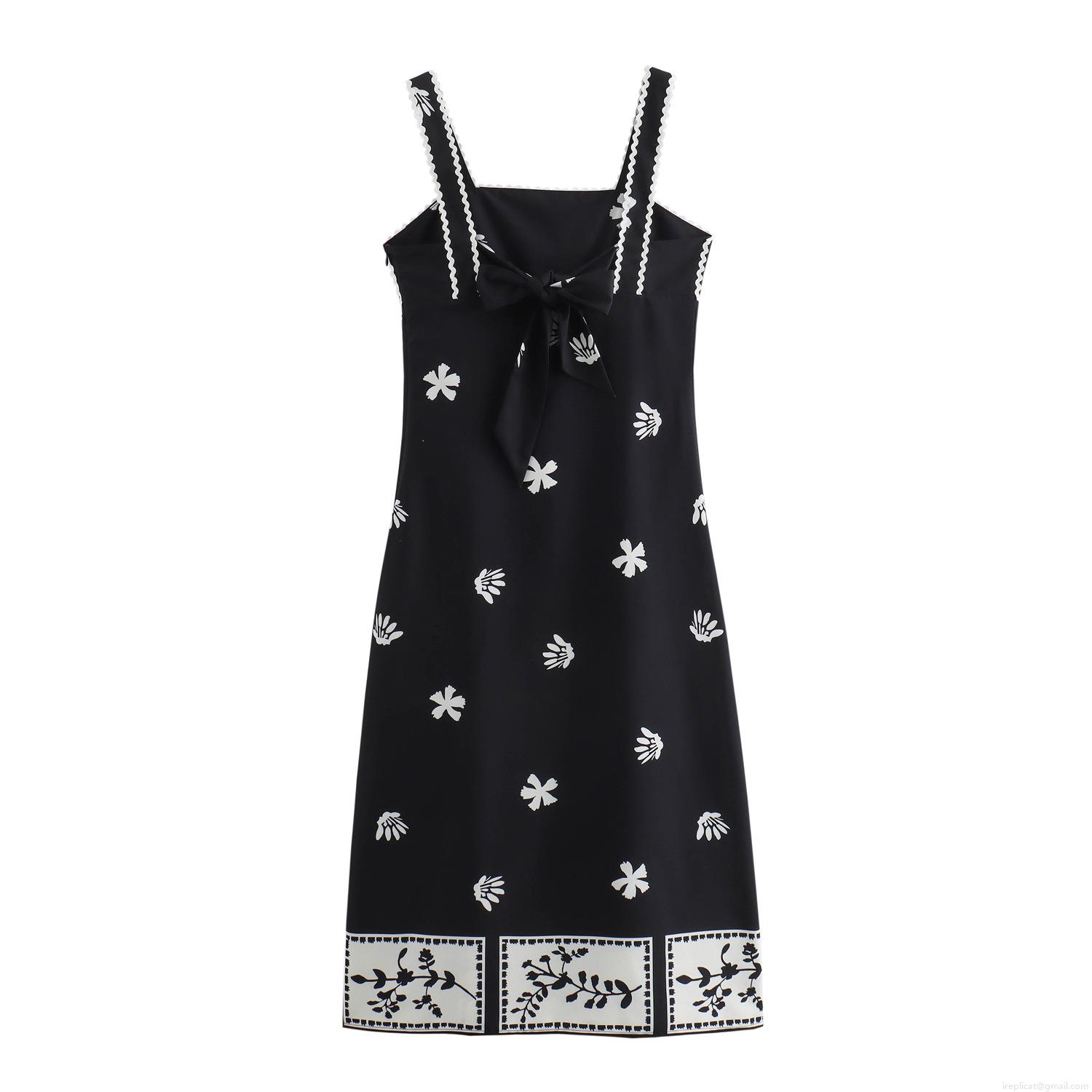 • Women's Elegant Vacation Style Maxi Dress Polyester Black Floral Print Sleeveless Square Neck With Wavy Trim Back Bow Tie Long A-Line Dress for Summer Beach Travel Party