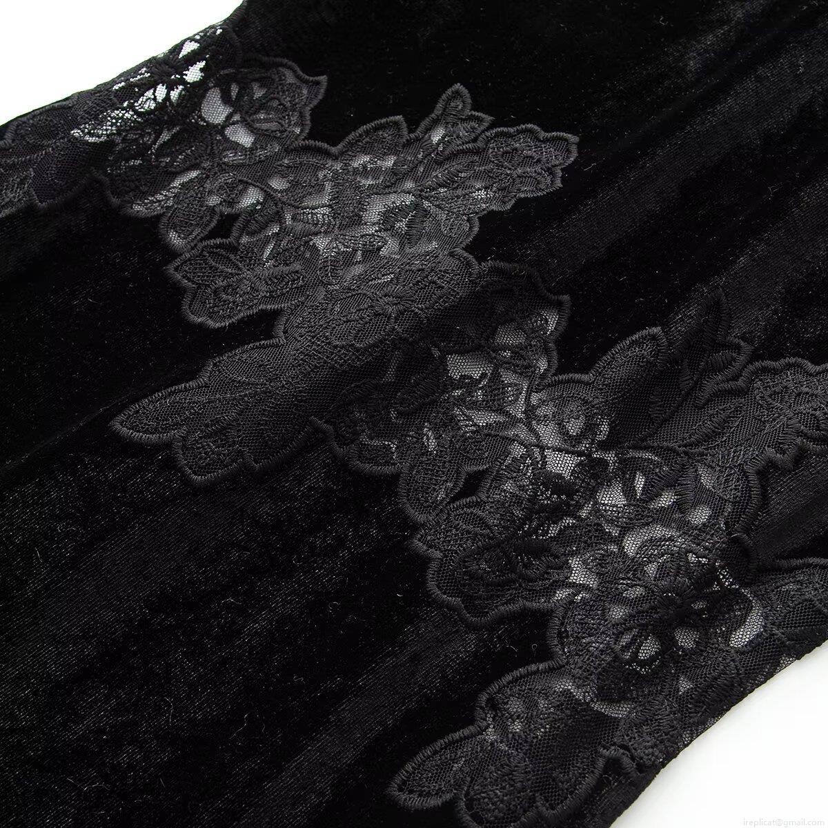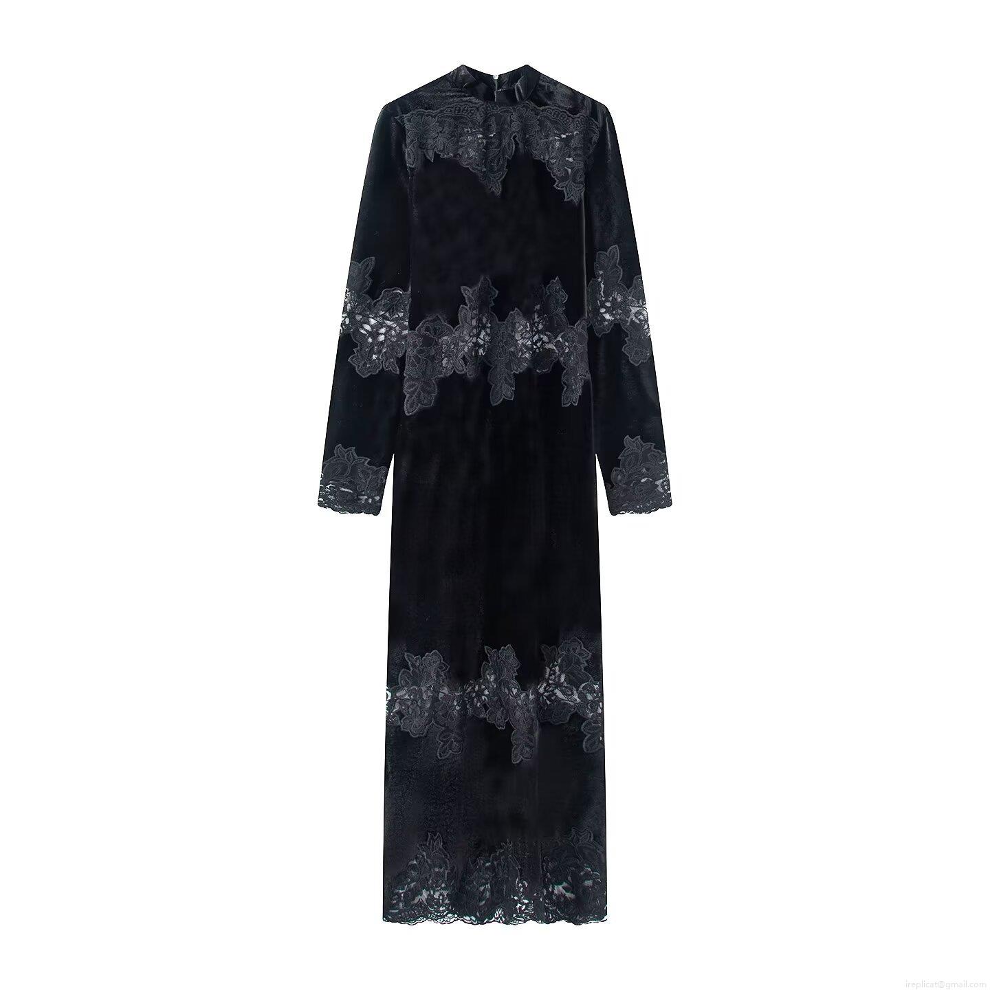 • Women's Elegant Velvet Lace Maxi Dress Retro Stand Collar Long Sleeve Bodycon Evening Gown For Wedding Party Black Vintage Sexy Dresses