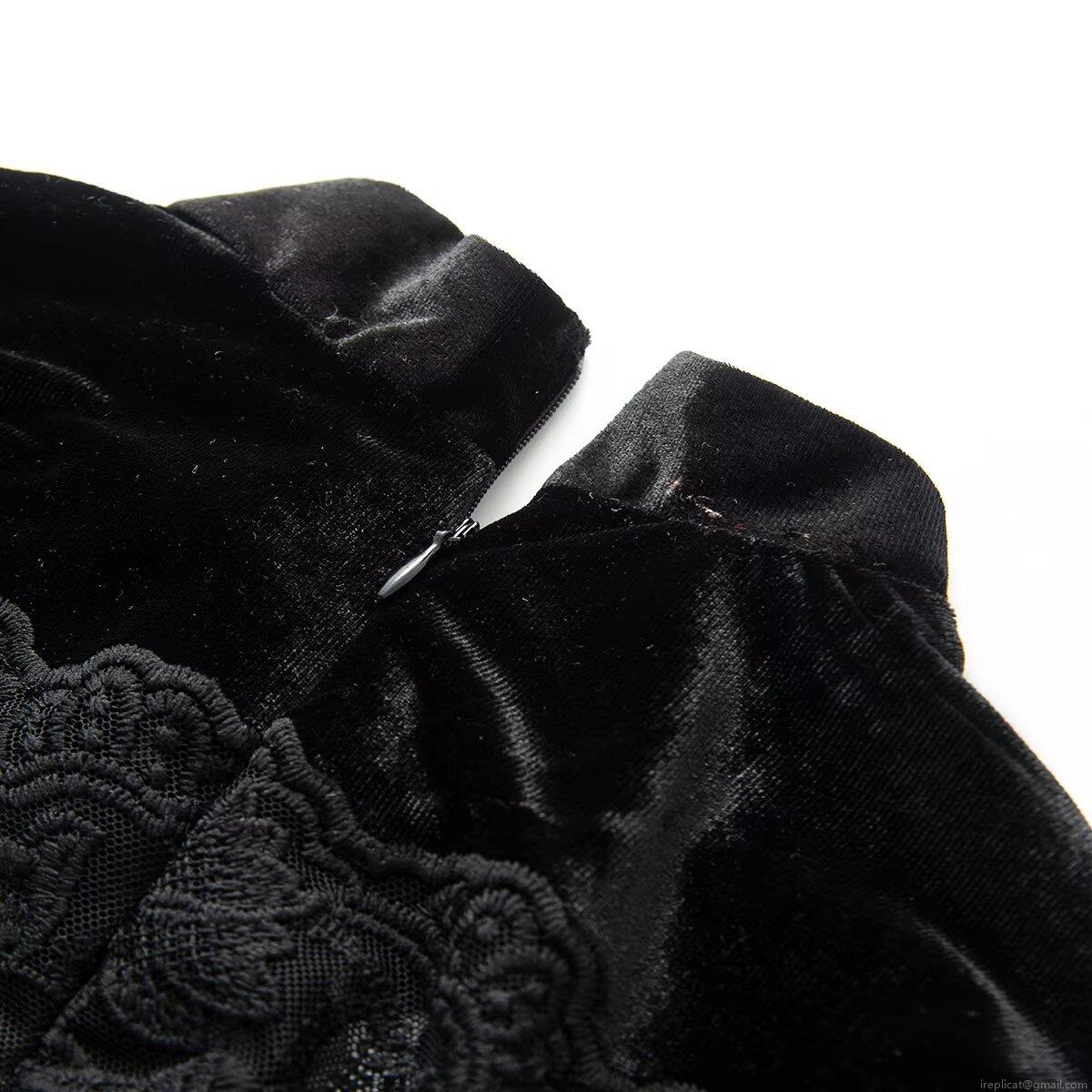 Lace, Velvet, Stand-up Collar, Floral Embroidery, Back Zipper