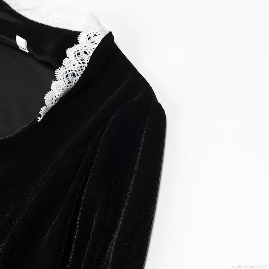• Women's Elegant Vintage Black Velvet Lace Stitching Maxi Dress Long Sleeve U-Neck Gothic Court Style Evening Party Long Gown