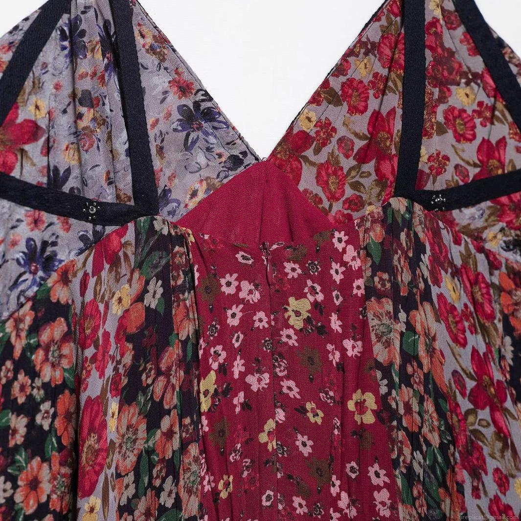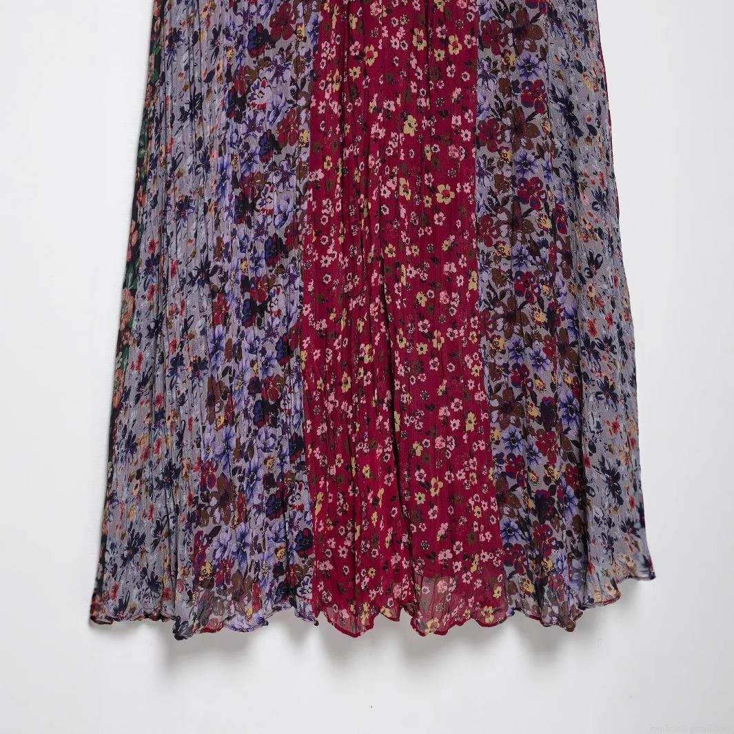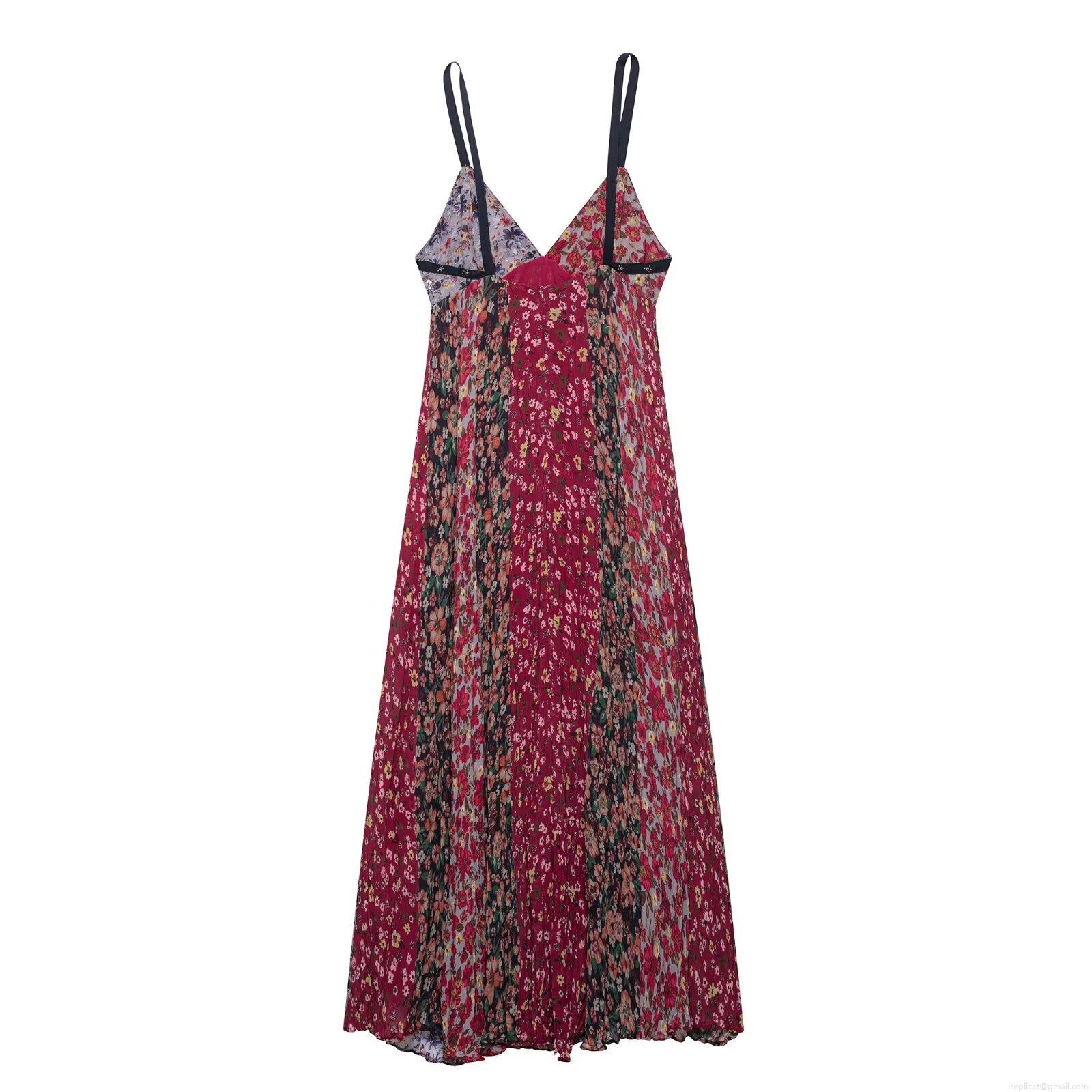 • Women's Elegant V-Neck Floral Print Patchwork Maxi Dress With Sequin Beaded Detail Sleeveless Pleated Cami Dress For Summer Vacation Party