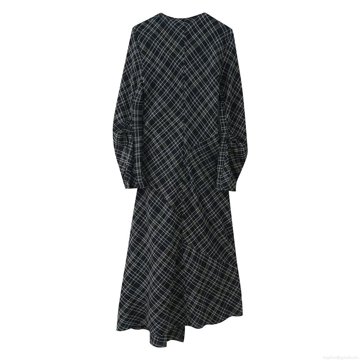 • Women's Elegant V-Neck Long Sleeve Gingham Plaid Dress 95% Polyester Twisted Knot Pleated Irregular Hem Maxi Dress For Women Party Daily Casual