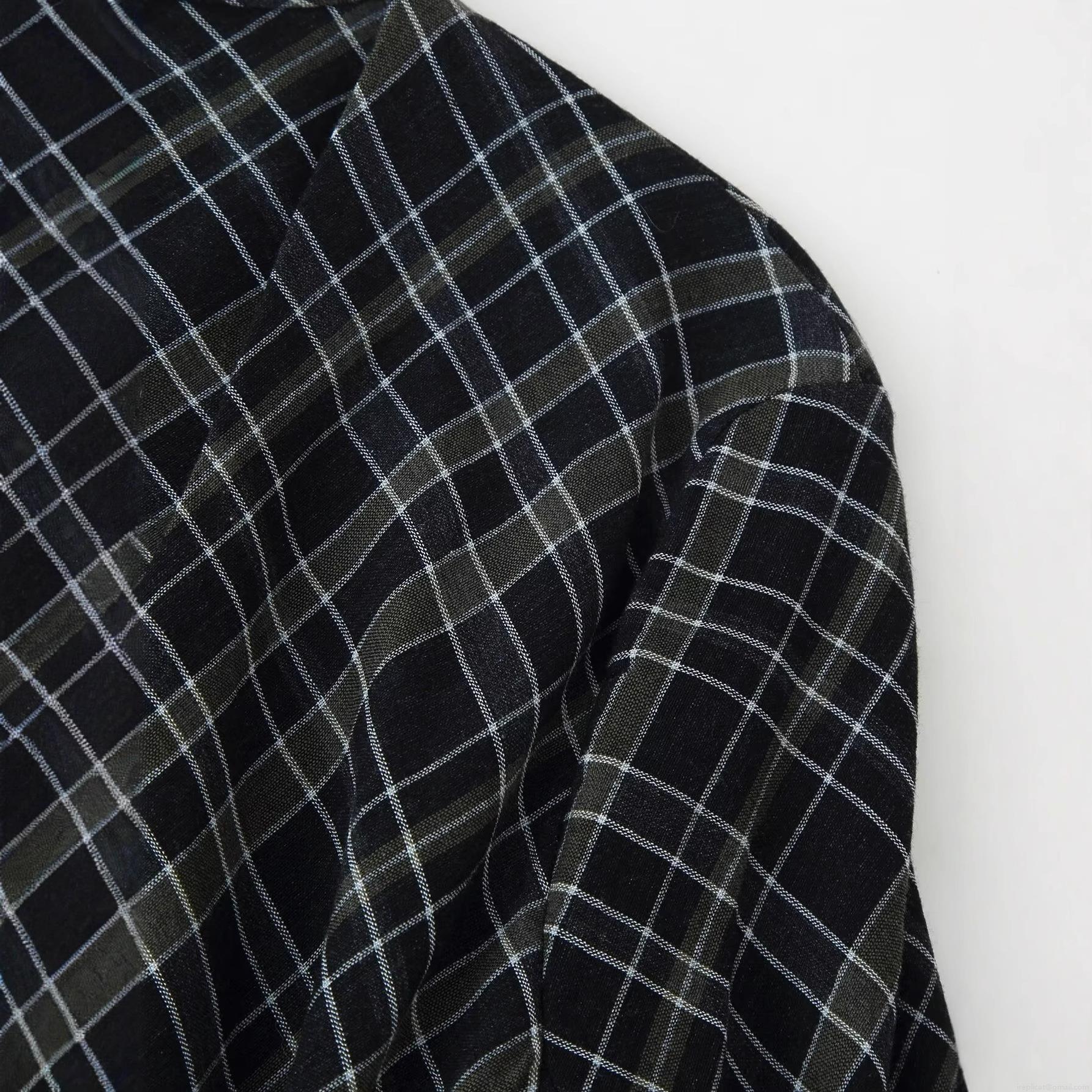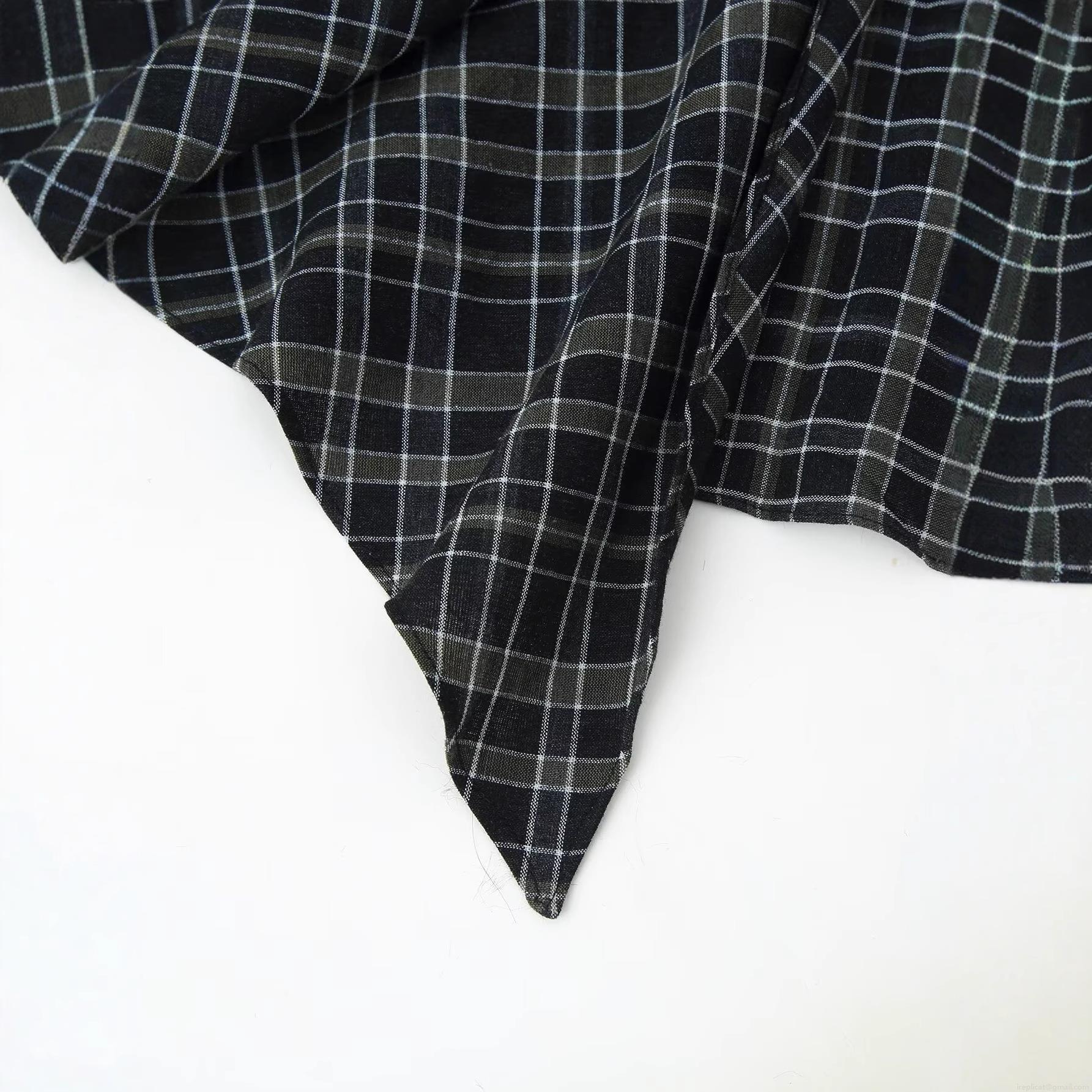 Checkered Pattern, Pleats, Grid, Knot, V-neck, Irregular Hem