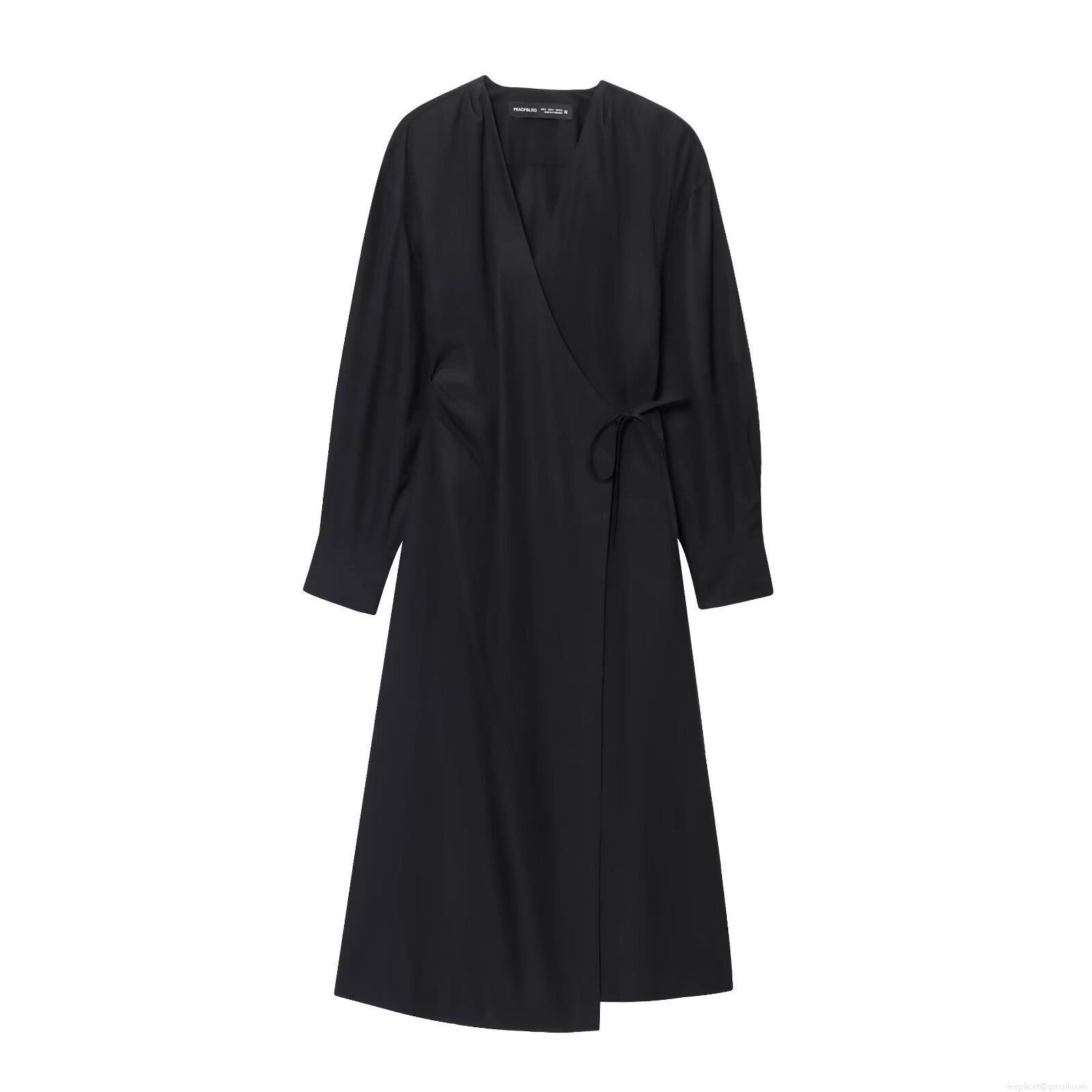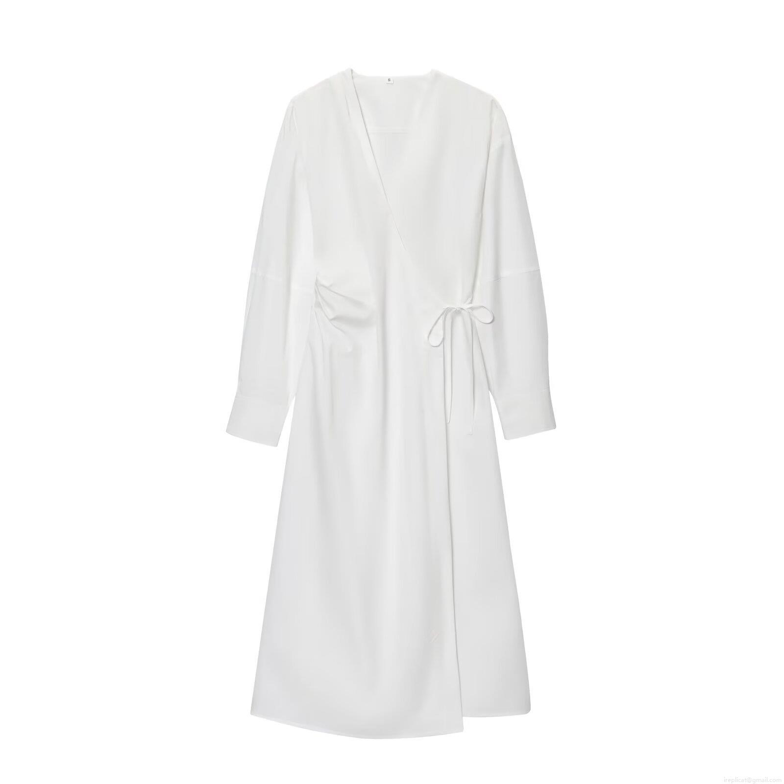 • Women's Elegant V-Neck Long Sleeve Maxi Dress Solid Color Wrap Tie Waist Umbrella Skirt Casual Streetwear Autumn Fall Party Dating Dress