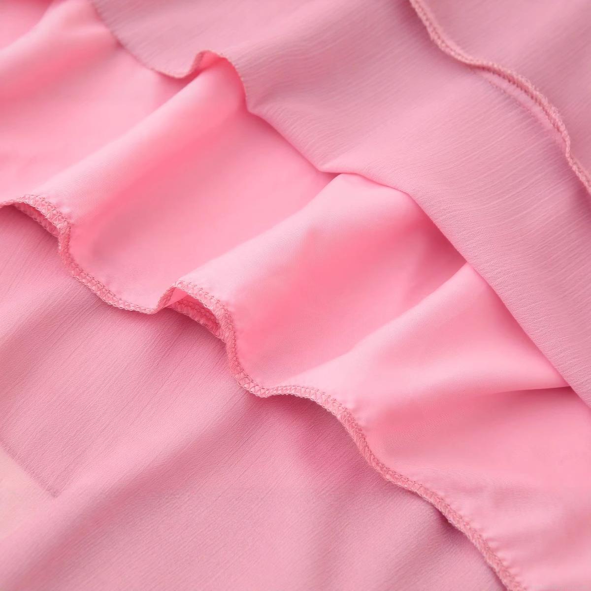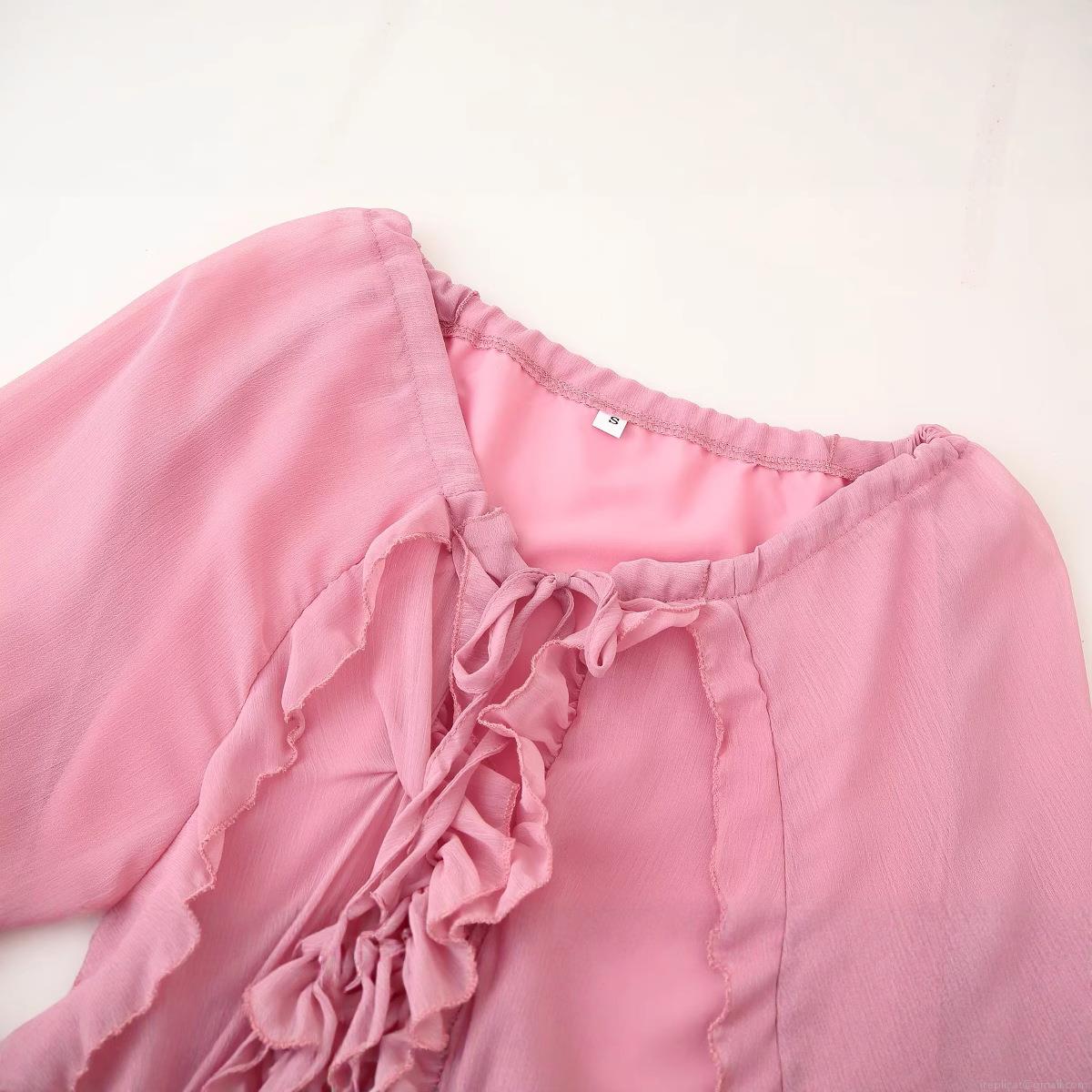 Solid Color, Ruffles, Lantern Sleeves, Lace-up Design, Irregular Hem