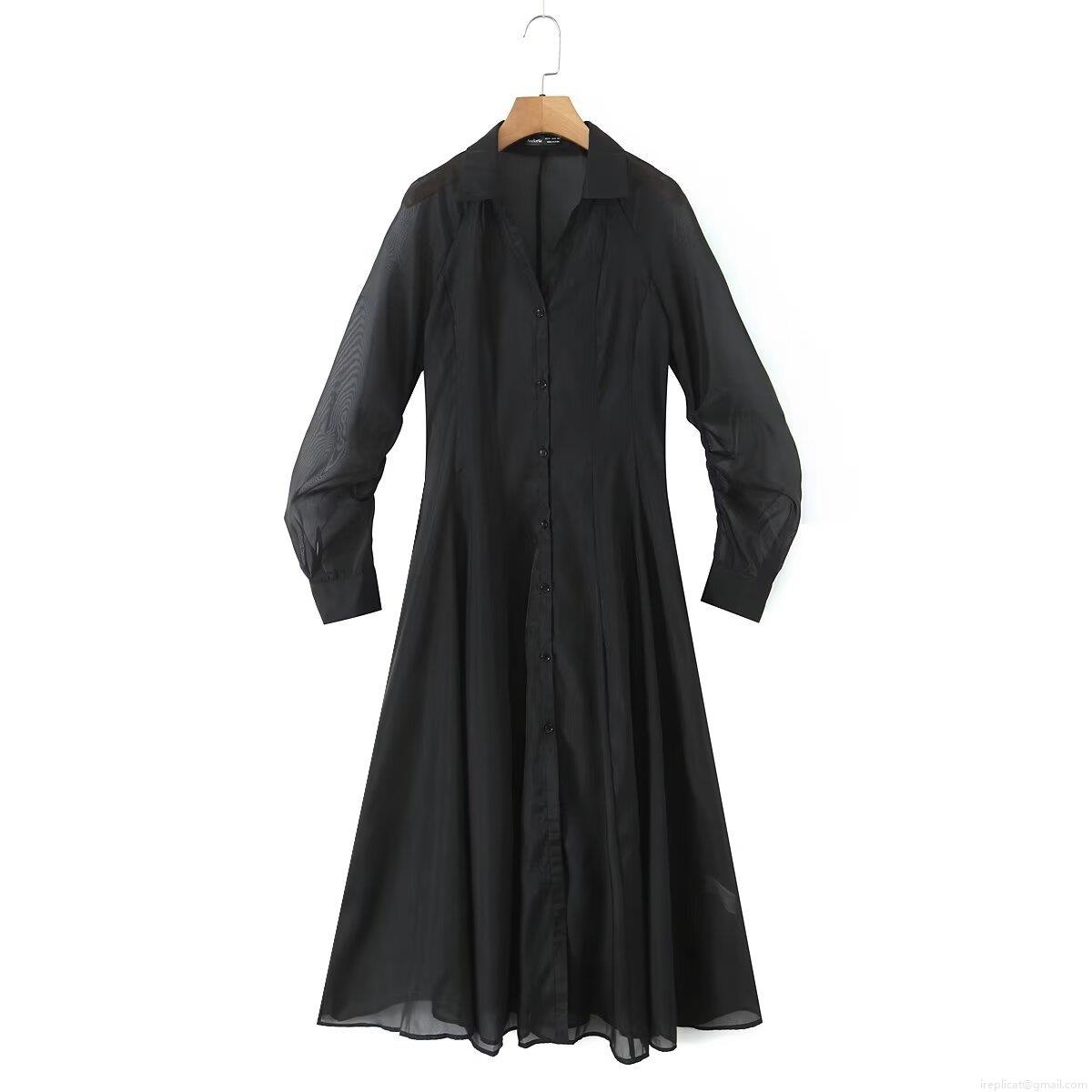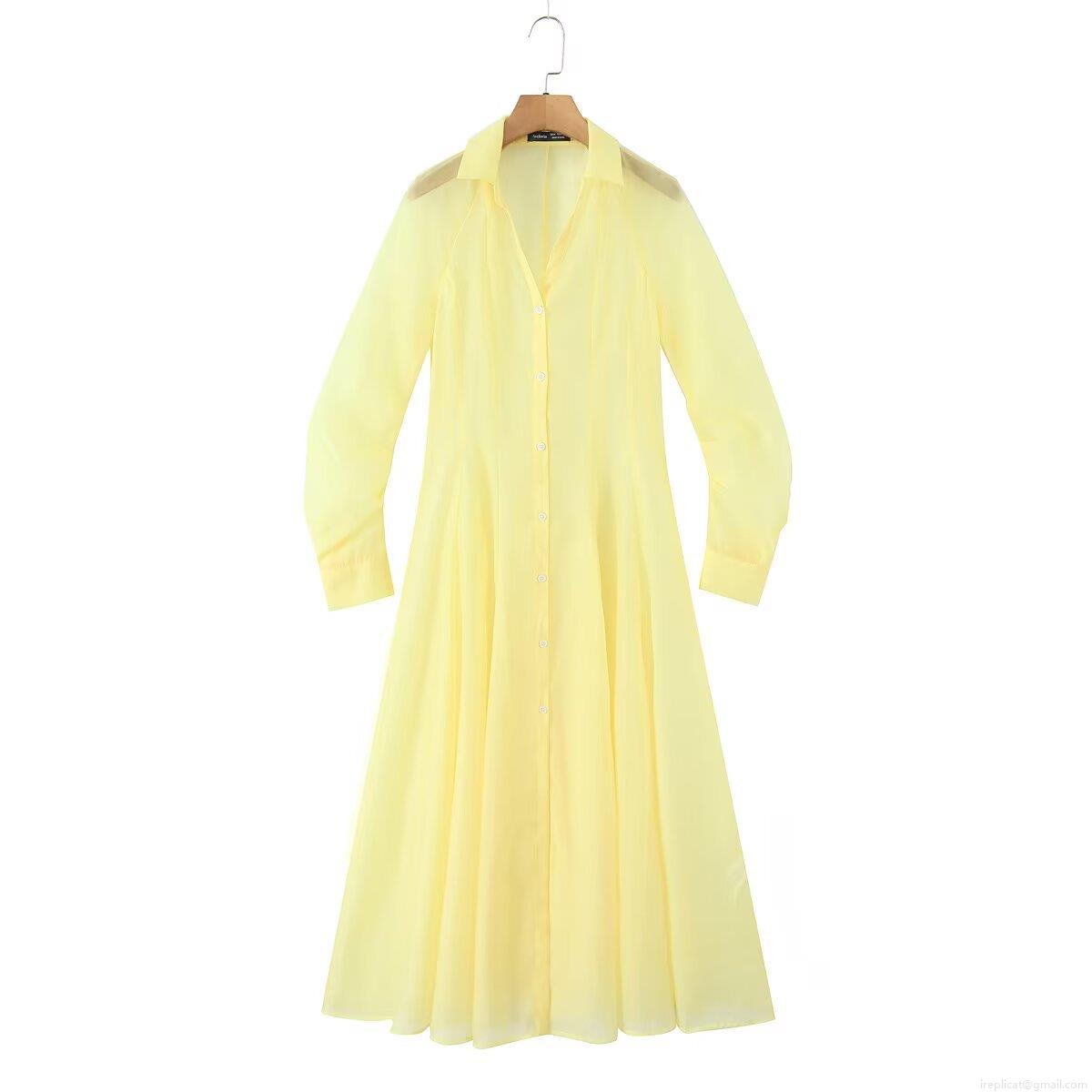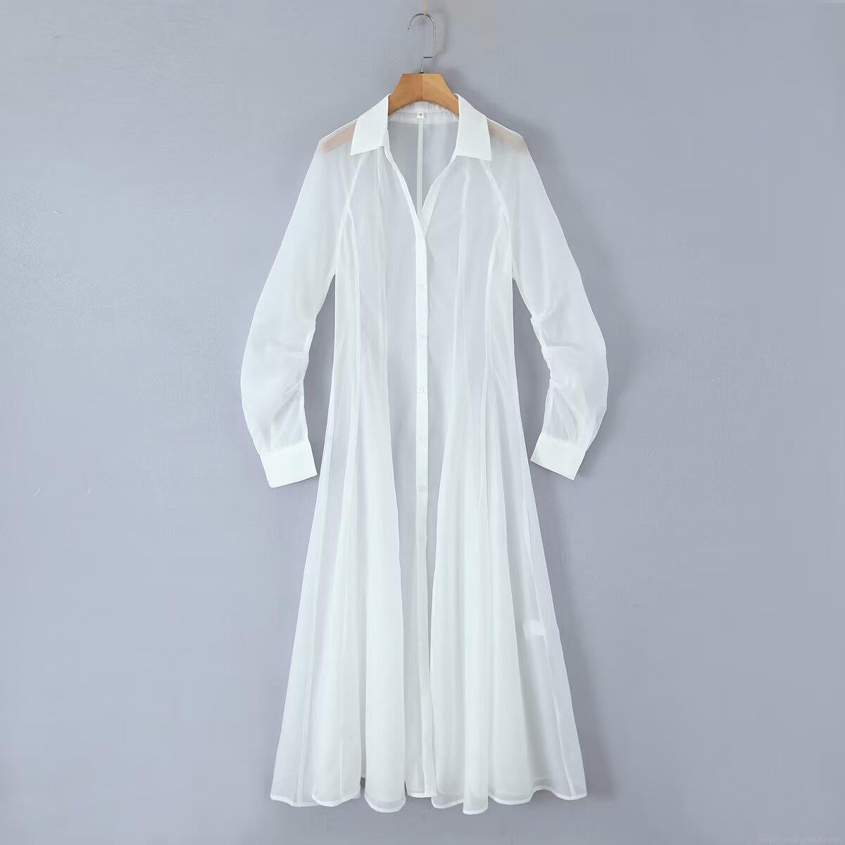• Women's Elegant V-Neck See-Through Texture Fabric Shirt Dress Long Sleeve Solid Color A-Line Maxi Dress for Party Vacation