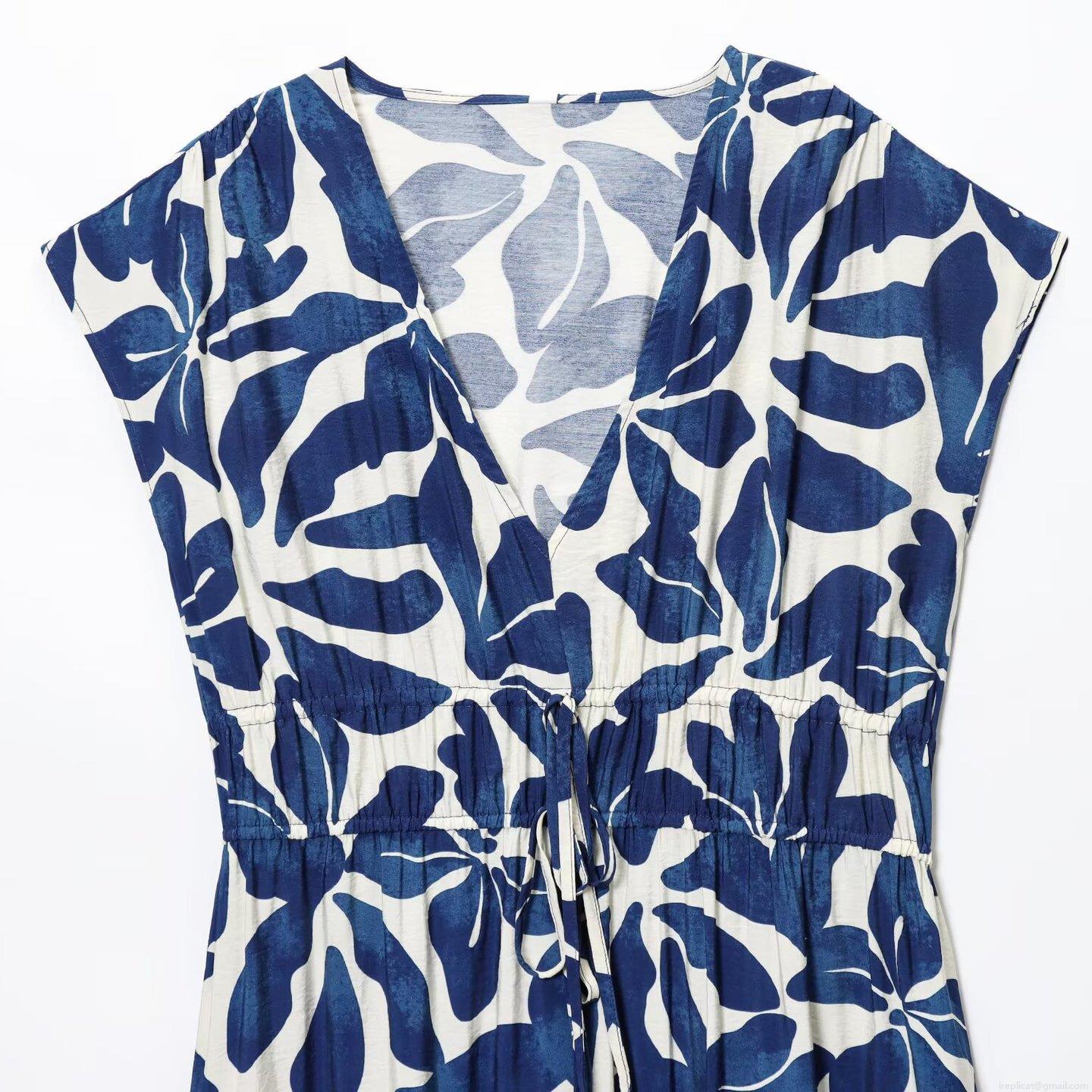 • Women's Elegant V-Neck Sleeveless Floral Print Maxi Dress Drawstring Waist Polyester Long Sundress for Summer Party Vacation