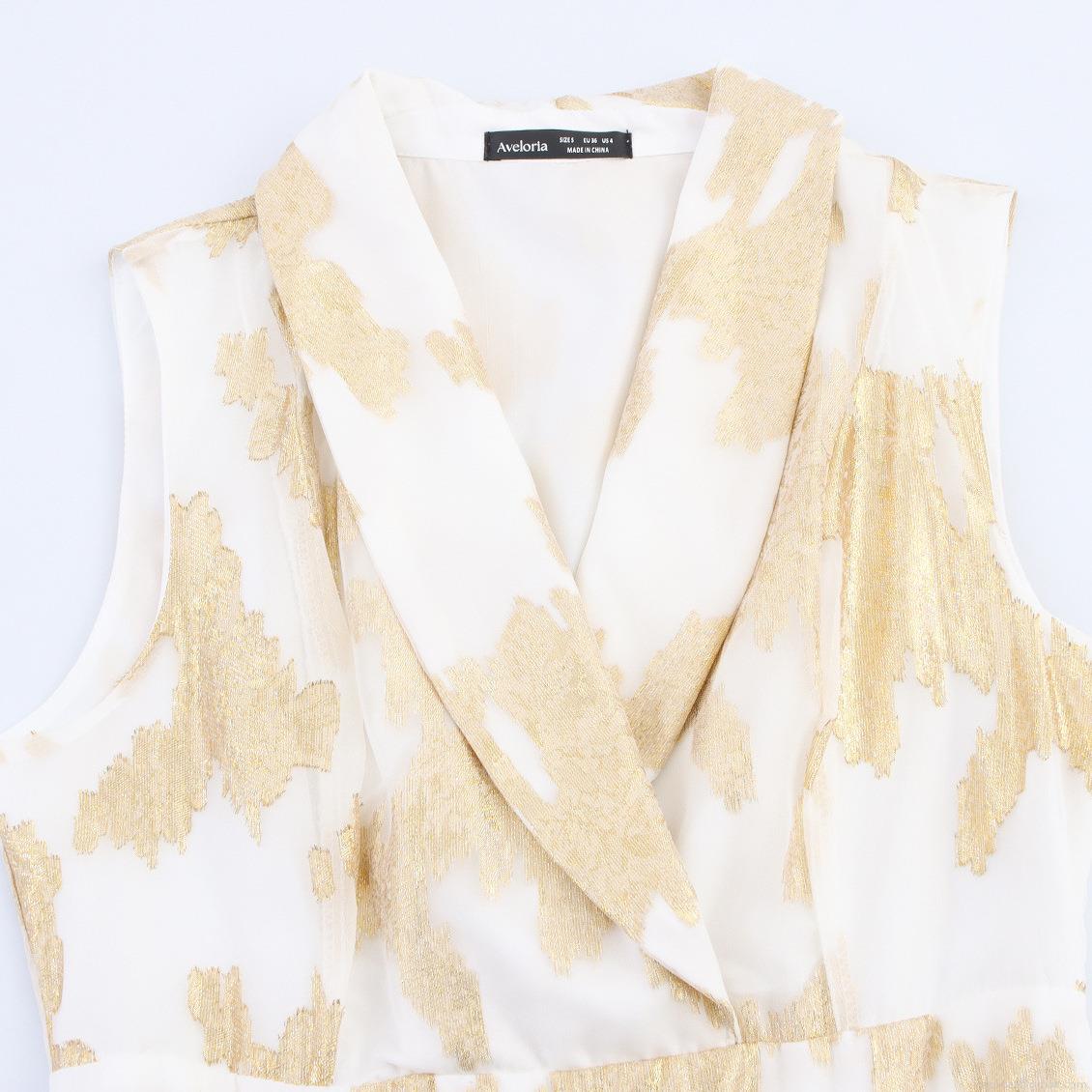 • Women's Elegant V-Neck Sleeveless Maxi Dress Gold Foil Textured High Waist A-Line Long Dress For Party Evening Commuting British Style Clothes