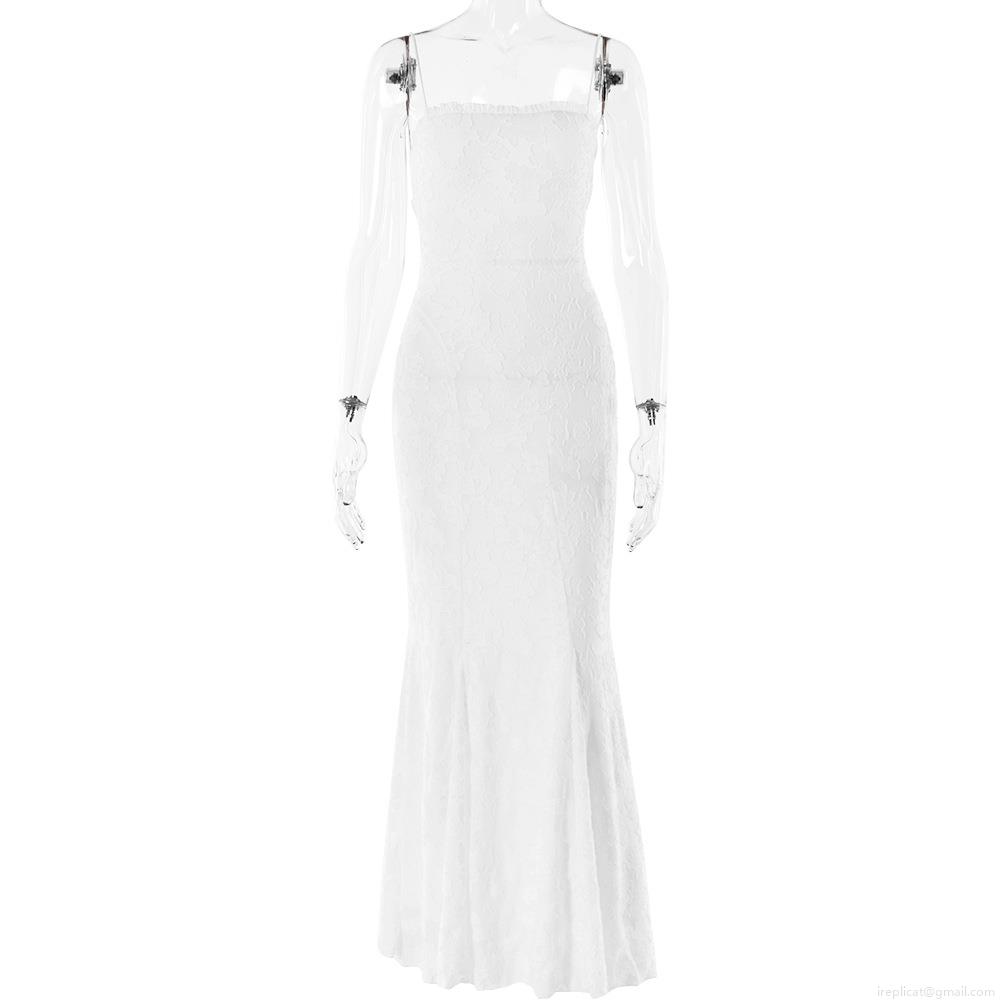 • Women's Elegant White Lace Backless Maxi Dress Sexy Mermaid Floor Length Camisole Strappy Evening Gown For Party Wedding Occasions