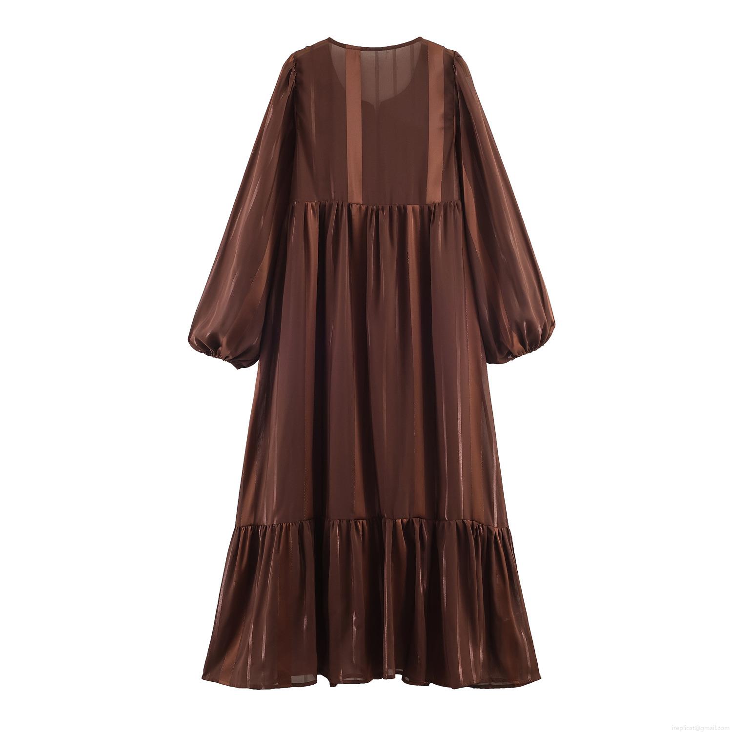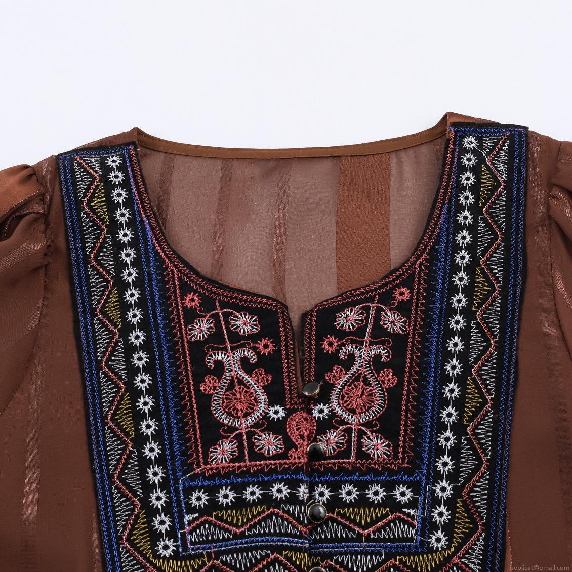 Vertical Stripes, Lantern Sleeves, Colorful Embroidery, Geometric Embroidery, Ruffled Splicing, Glossy Fabric