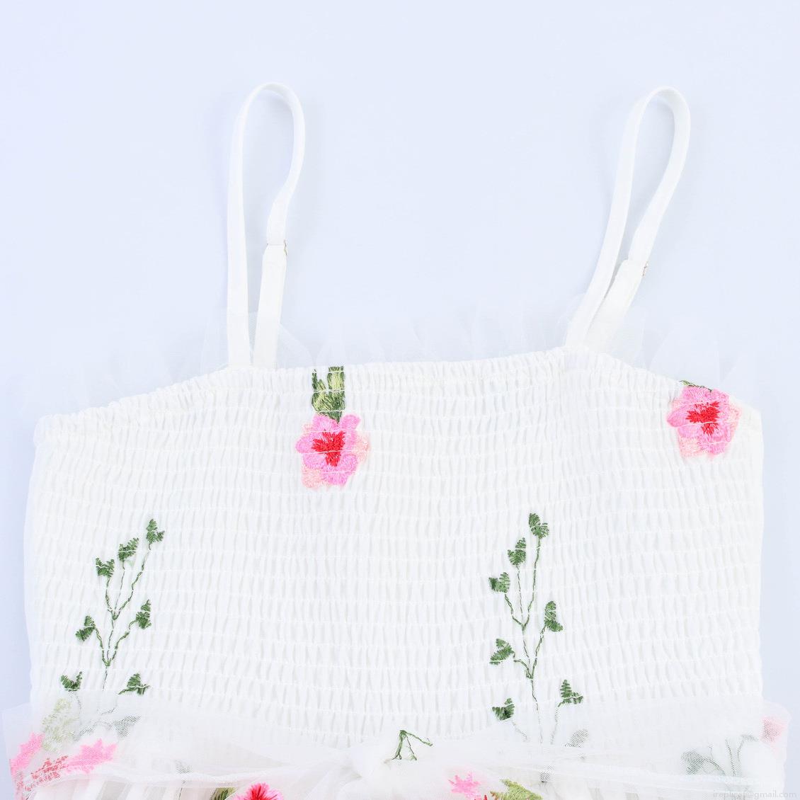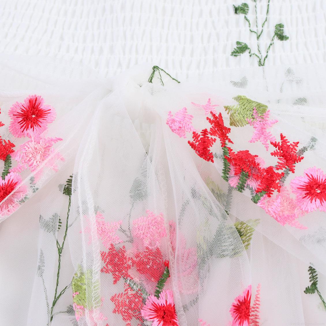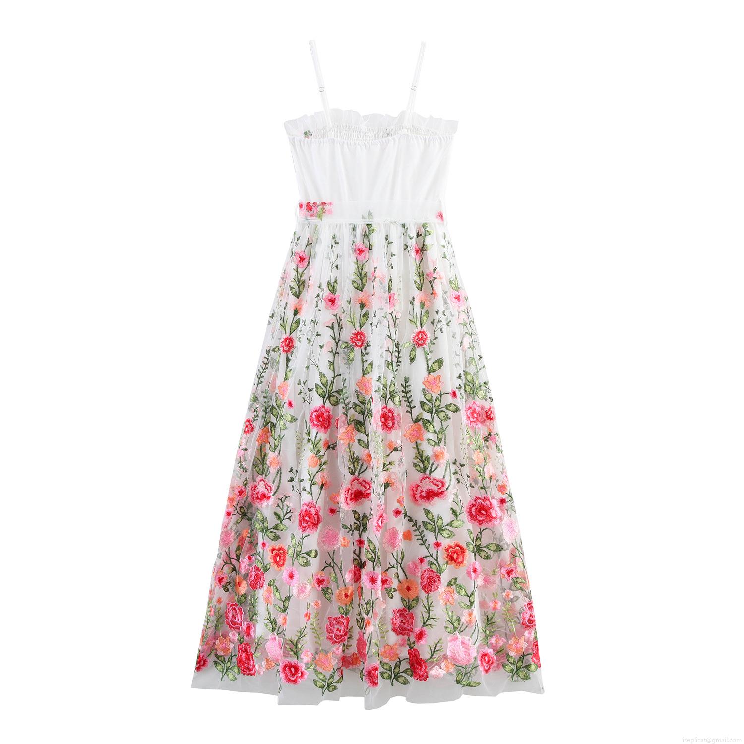 • Women's Floral Embroidery Mesh Maxi Dress Smocked Waist Spaghetti Strap Sweet Elegant A-Line Long Dress For Summer Party Wedding Guest