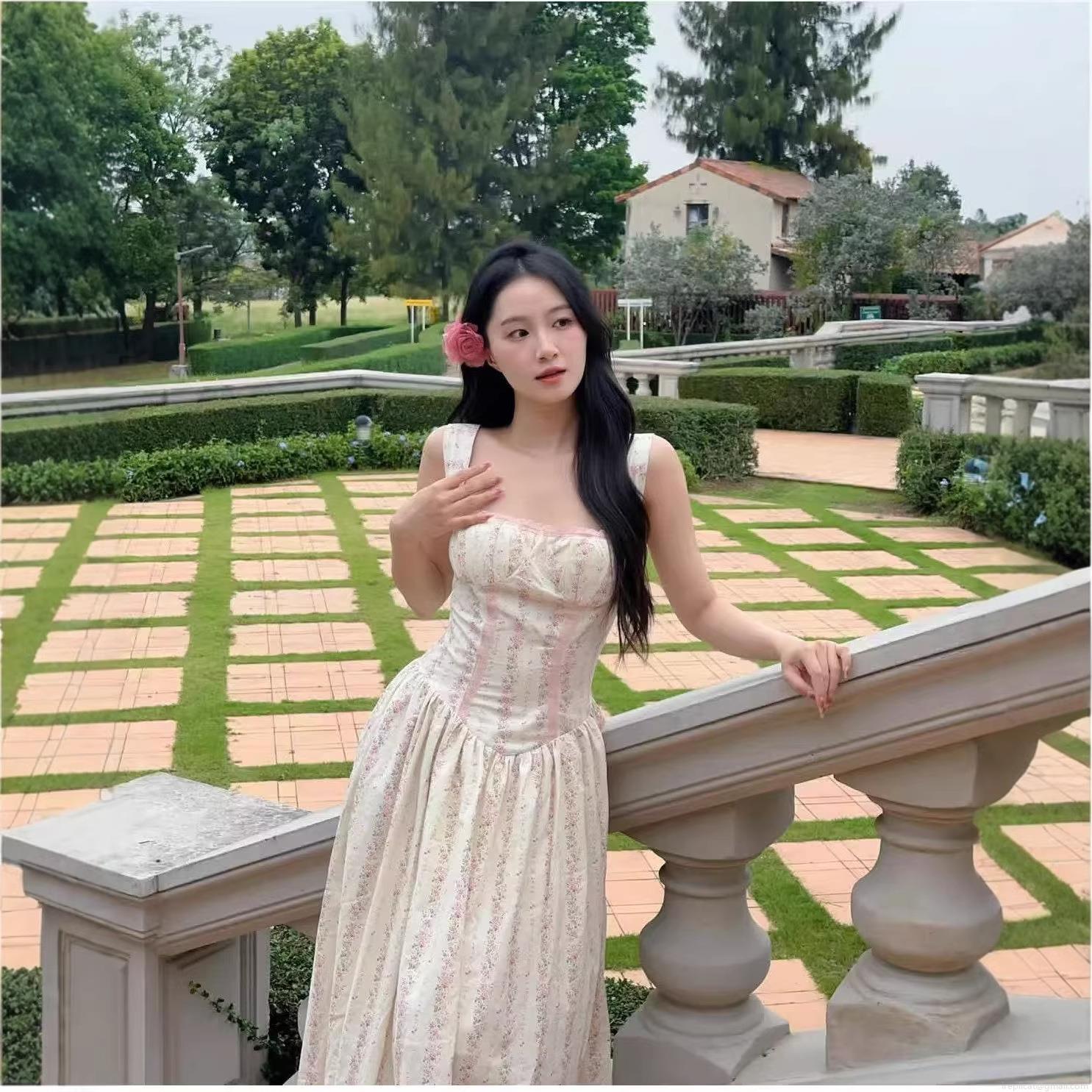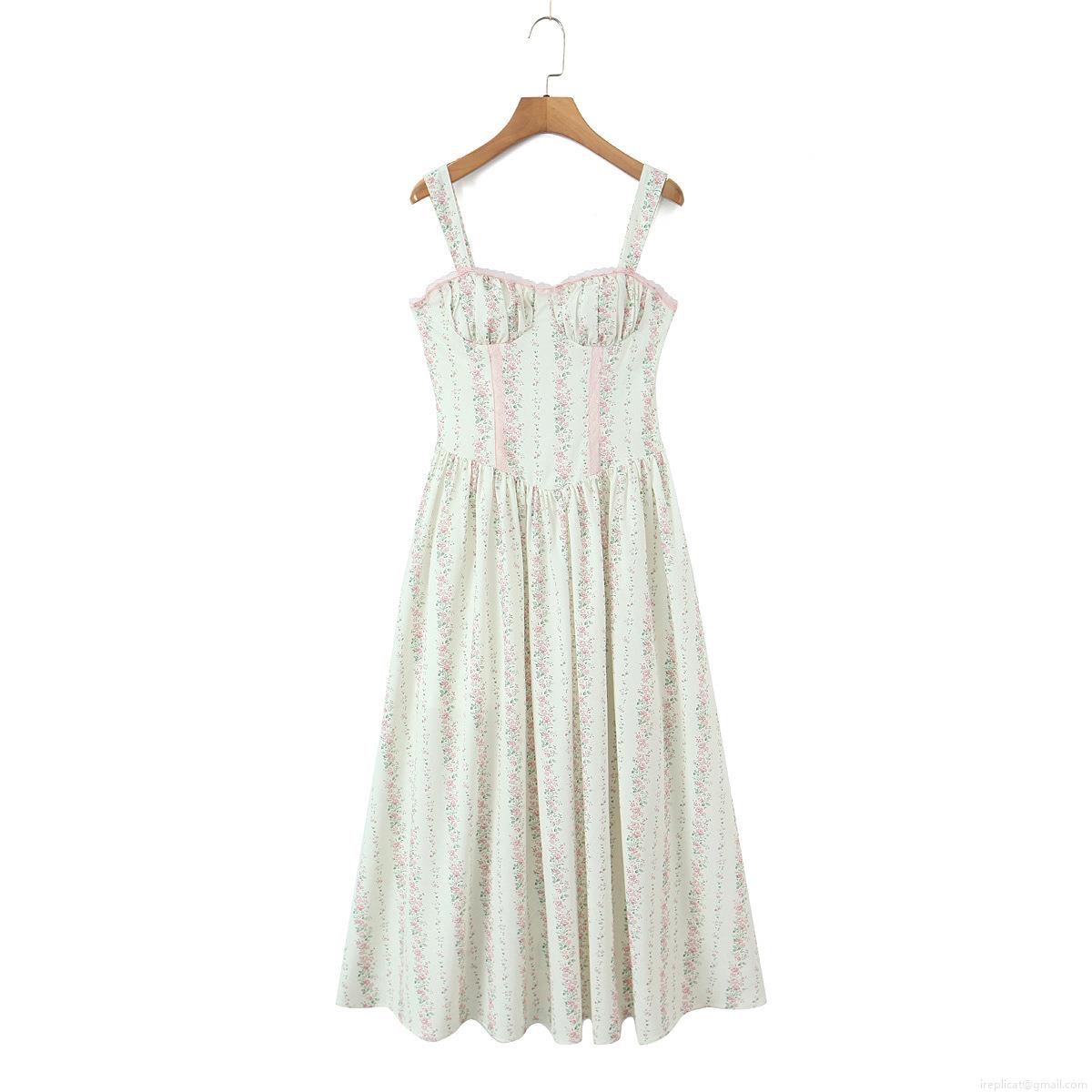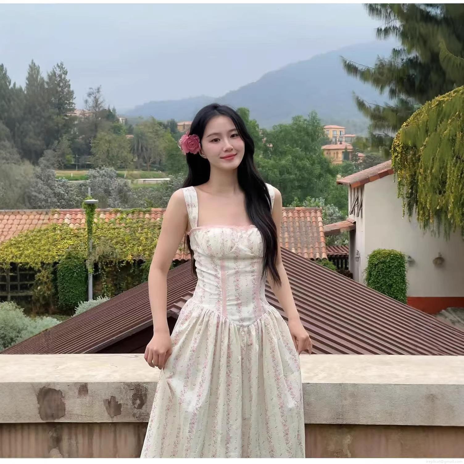 • Women's Floral Maxi Dress Sexy Camisole Sweetheart Neck Lace Trim High Waist A-Line Pastoral Long Dress For Summer Party Vacation