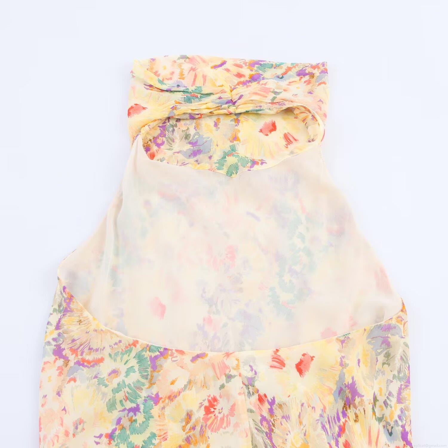 Floral, Printing, Neckband, Backless, A-line Style