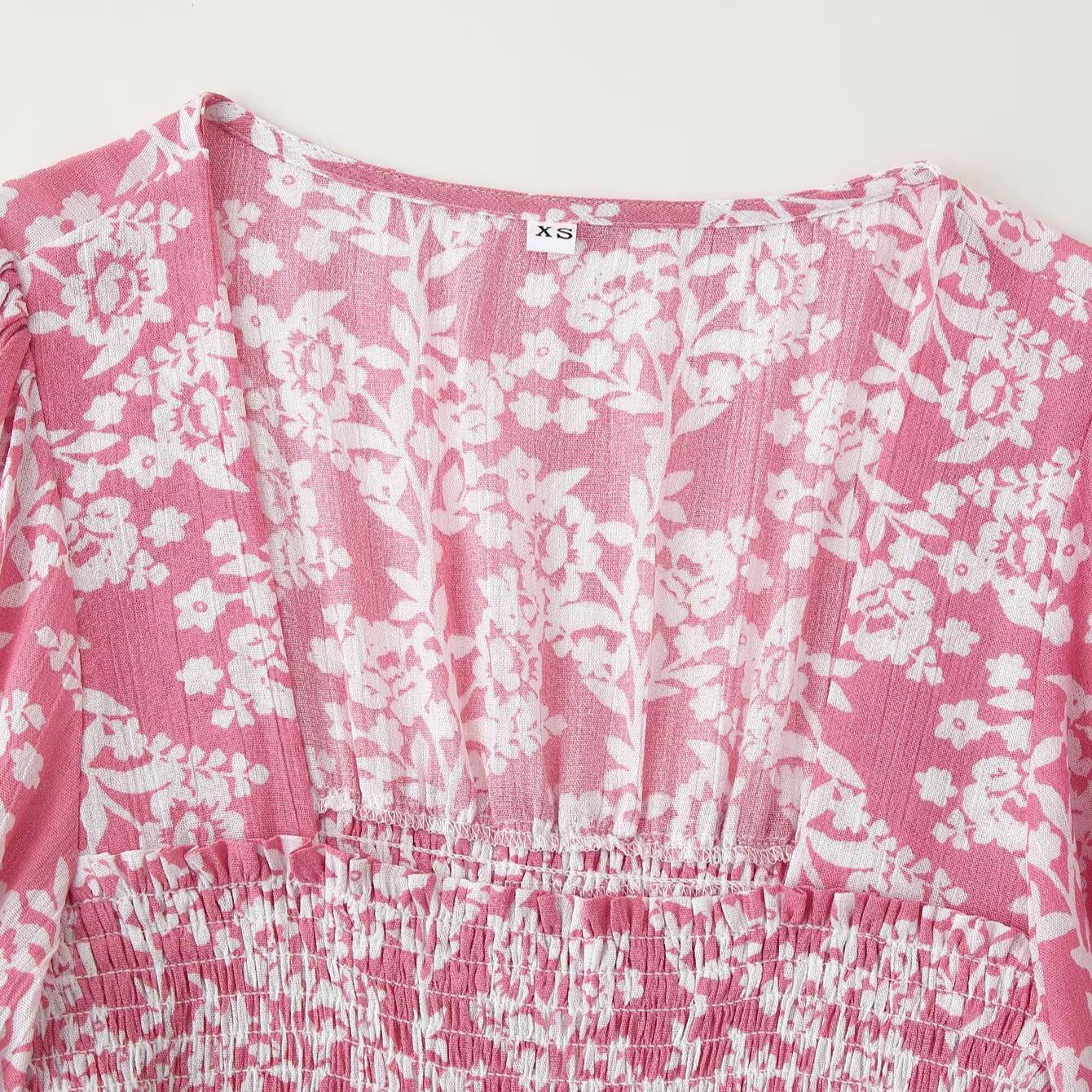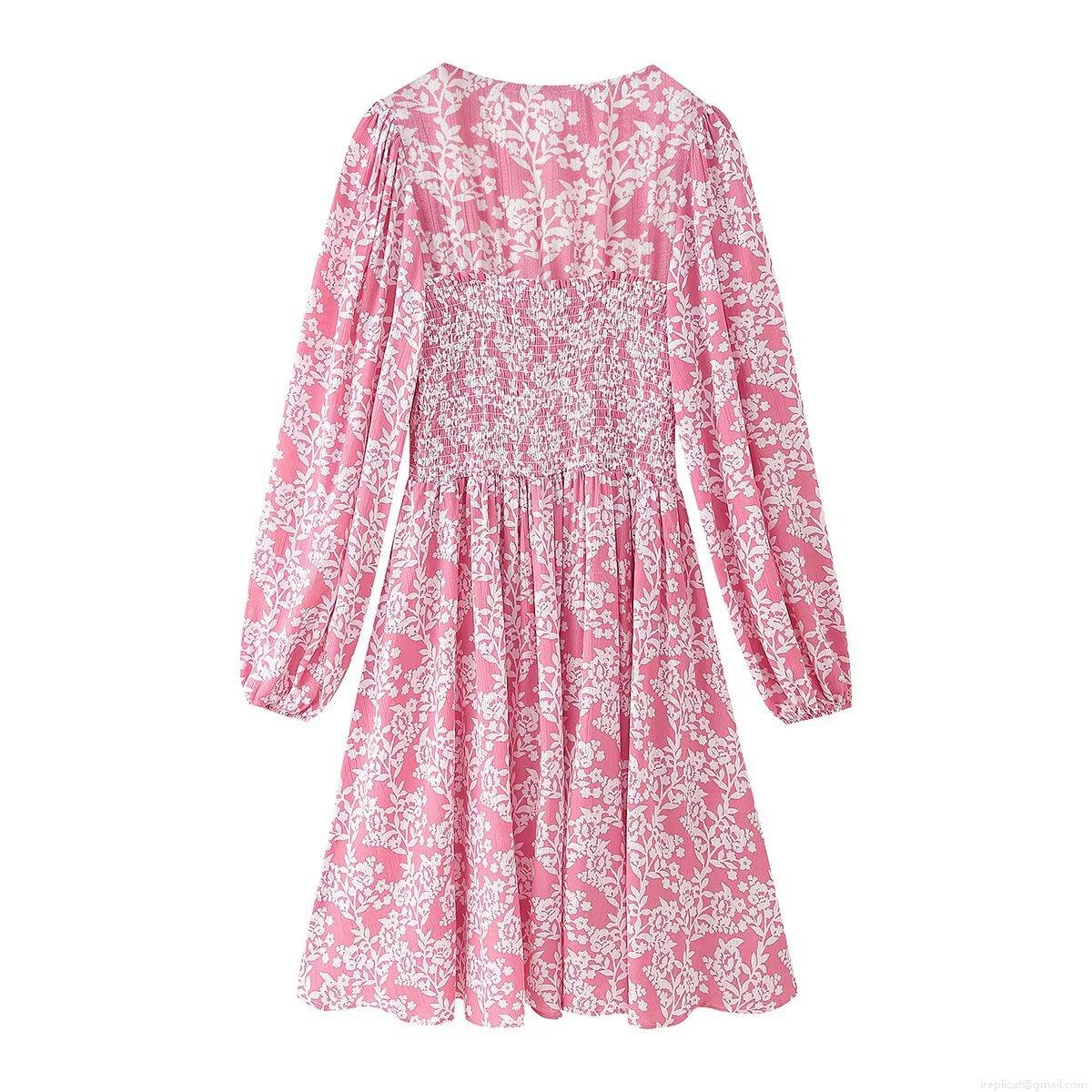 • Women's Floral Print Maxi Dress 100% Polyester V Neck Smocking Waist Long Sleeve Elegant Vacation Holiday Casual Large Swing Dress
