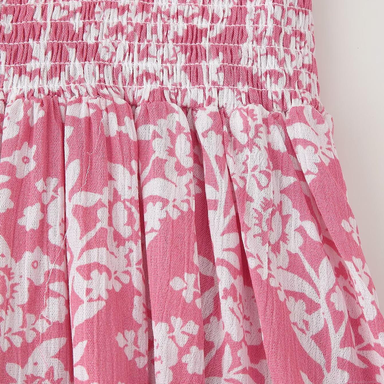 Women's Floral Print Maxi Dress 100% Polyester V Neck Smocking Waist Long Sleeve Elegant Vacation Holiday Casual Large Swing Dress