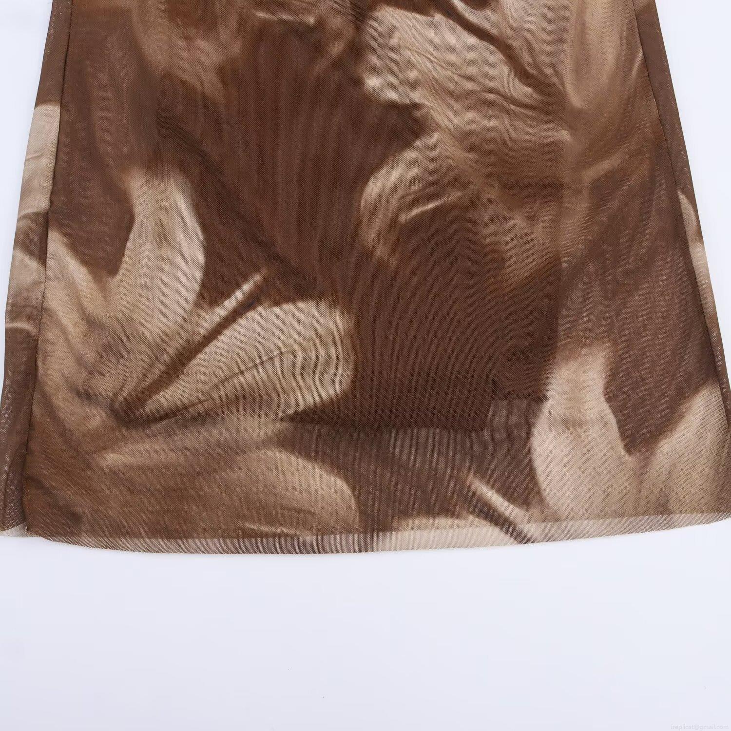 • Women's Floral Print Mesh Maxi Dress Cowl Neck Scarf Necktie Detail Ruched Cami Slip Dress For Party Sexy Slim Fit Elegant Brown Long Dress