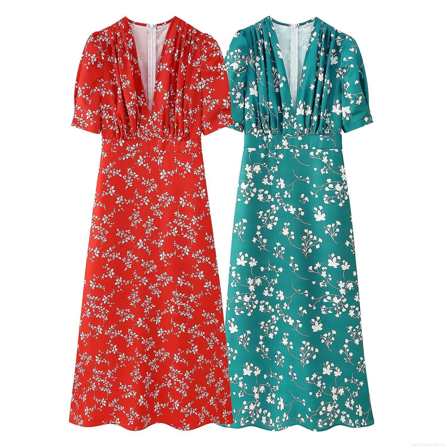• Women's Floral Print V Neck Maxi Dress Short Sleeve Ruched High Waist Summer Autumn Streetwear Boho Party Dress For Ladies