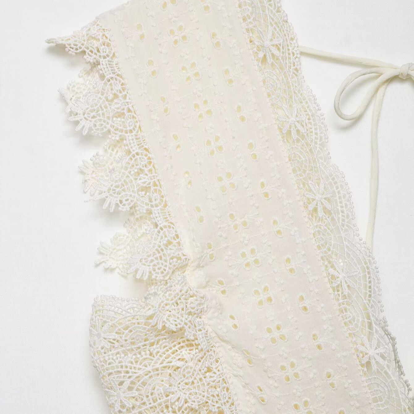 Solid Color, Embroidery, Hollow Out, Plants And Flowers, Pleats, Lace Patchwork