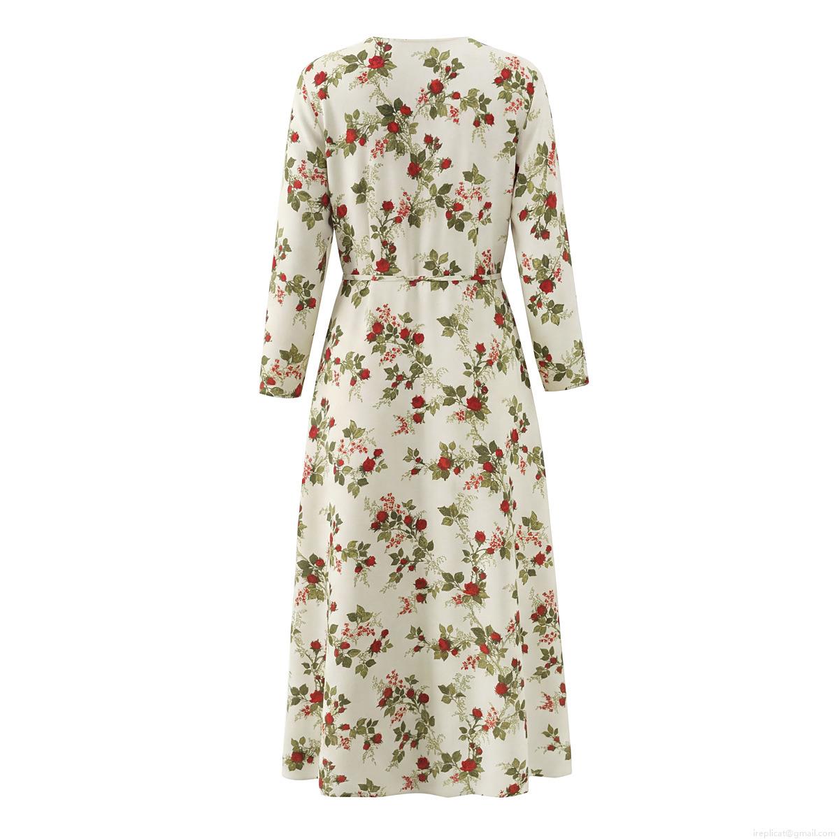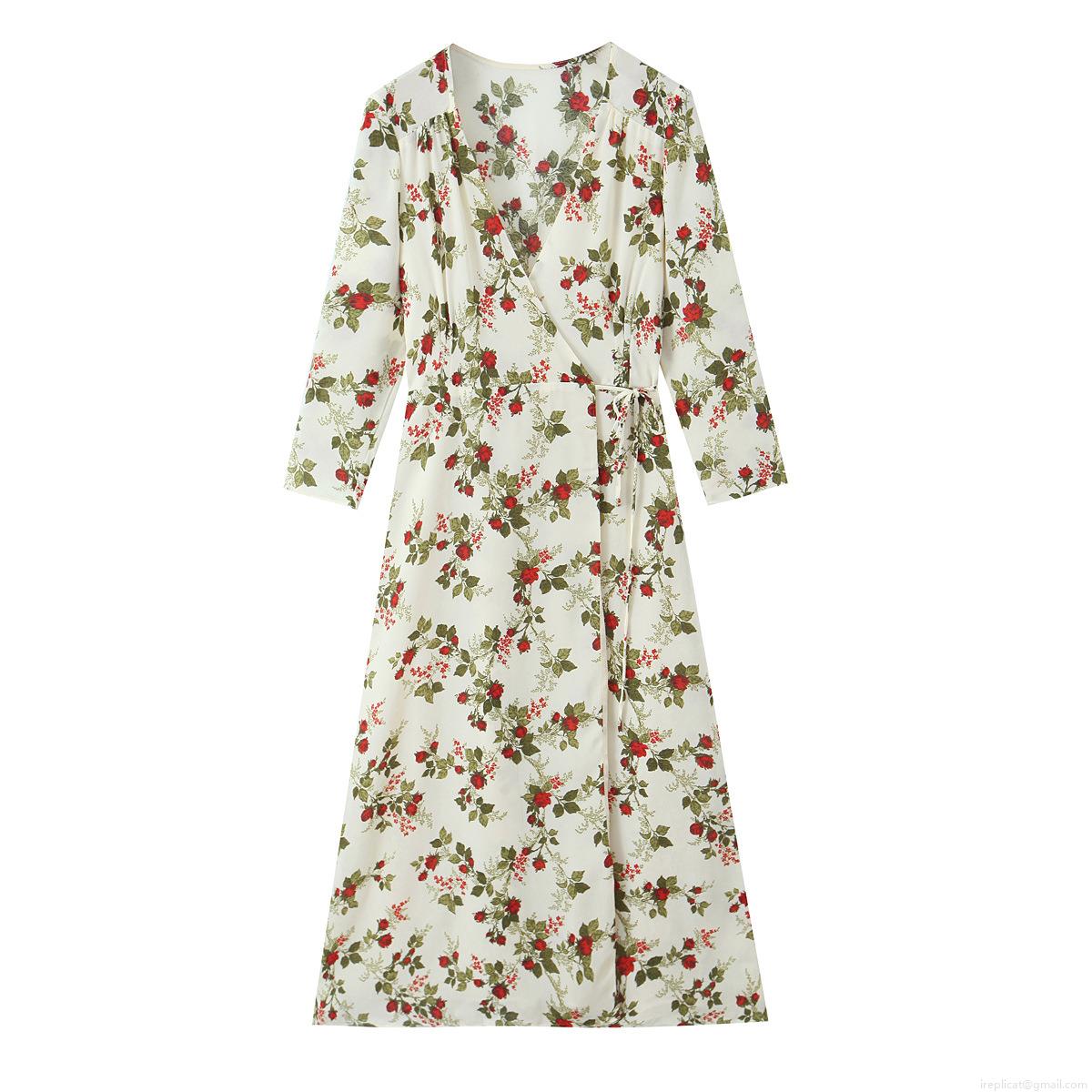 • Women's French Retro Floral Wrap Maxi Dress Long Sleeve V Neck Waist Tie Polyester Pastoral Long Dress For Summer Vacation Date Lady Elegant