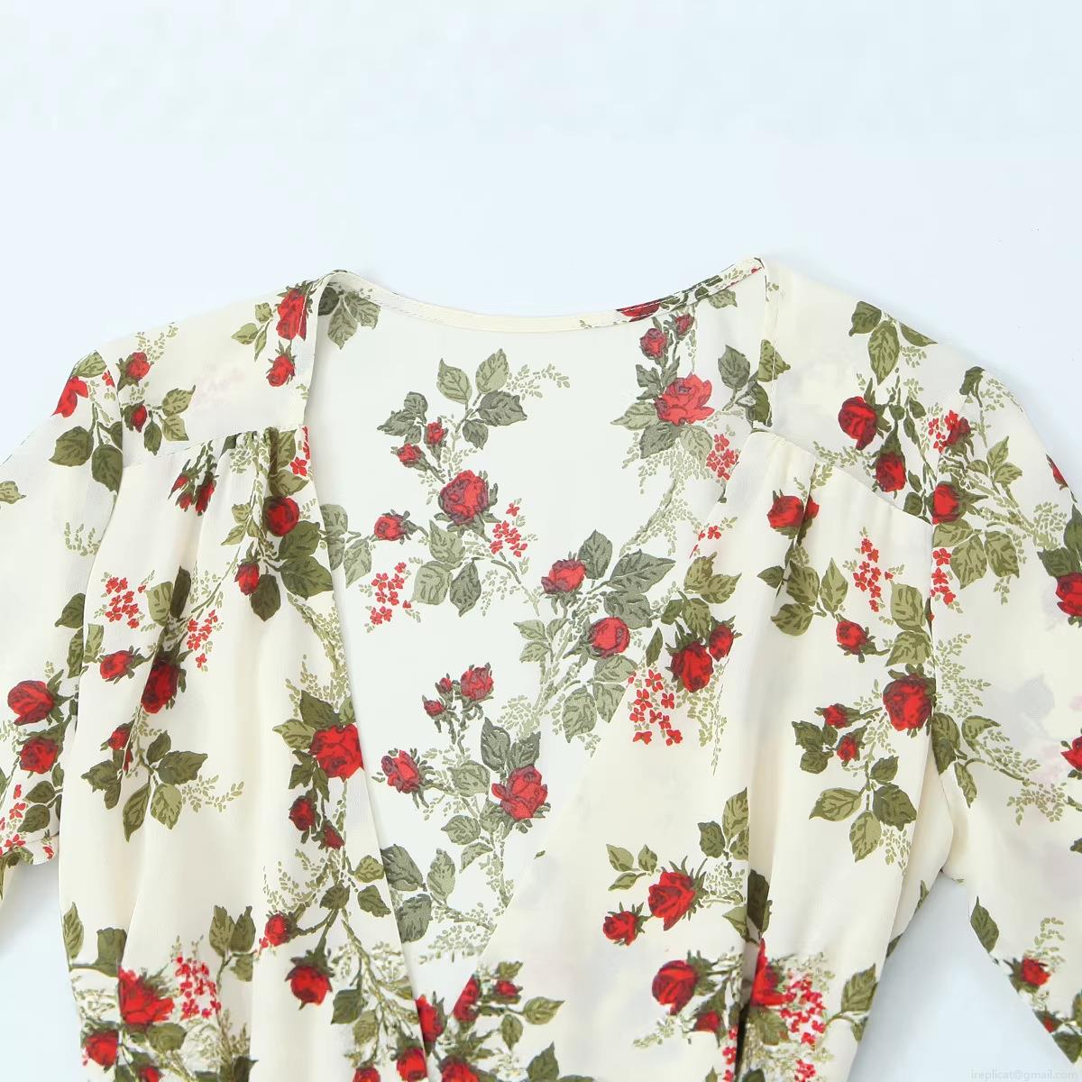Floral Pattern, Rose, V-neck, Lace, Wrap