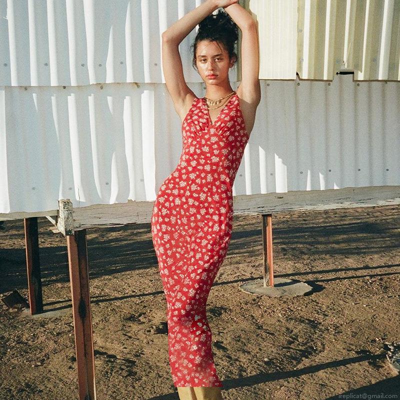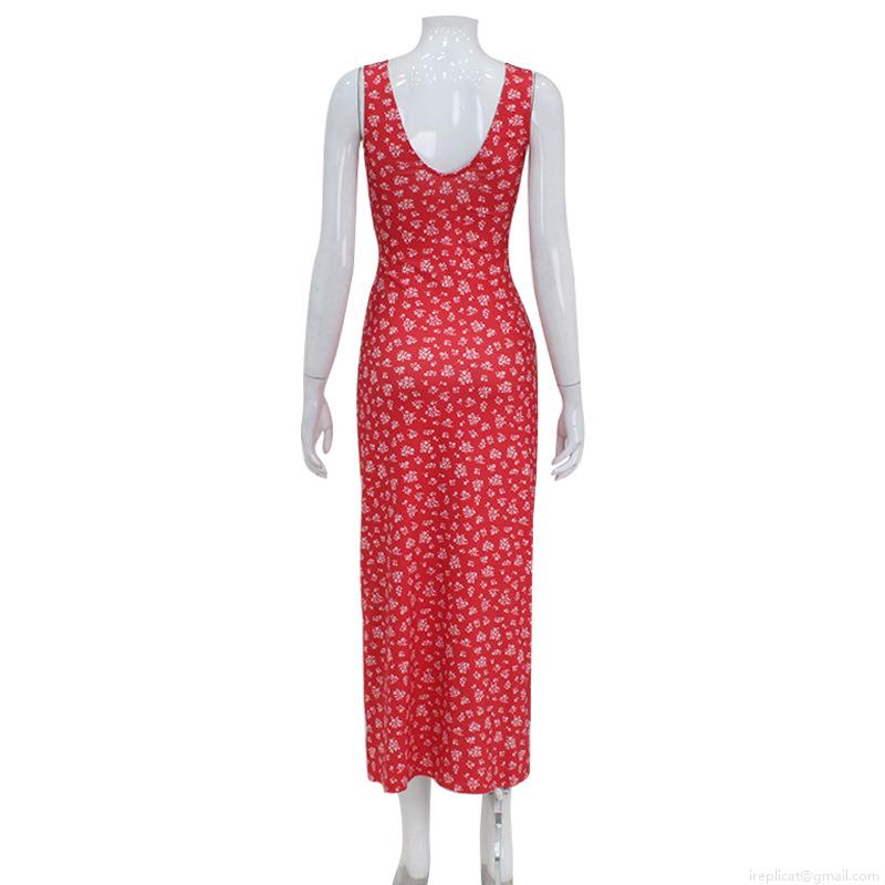 • Women's French Retro V-Neck Floral Maxi Dress Sexy Sleeveless Slim Fit Summer Beach Sundress Polyester Spandex Slip Dress