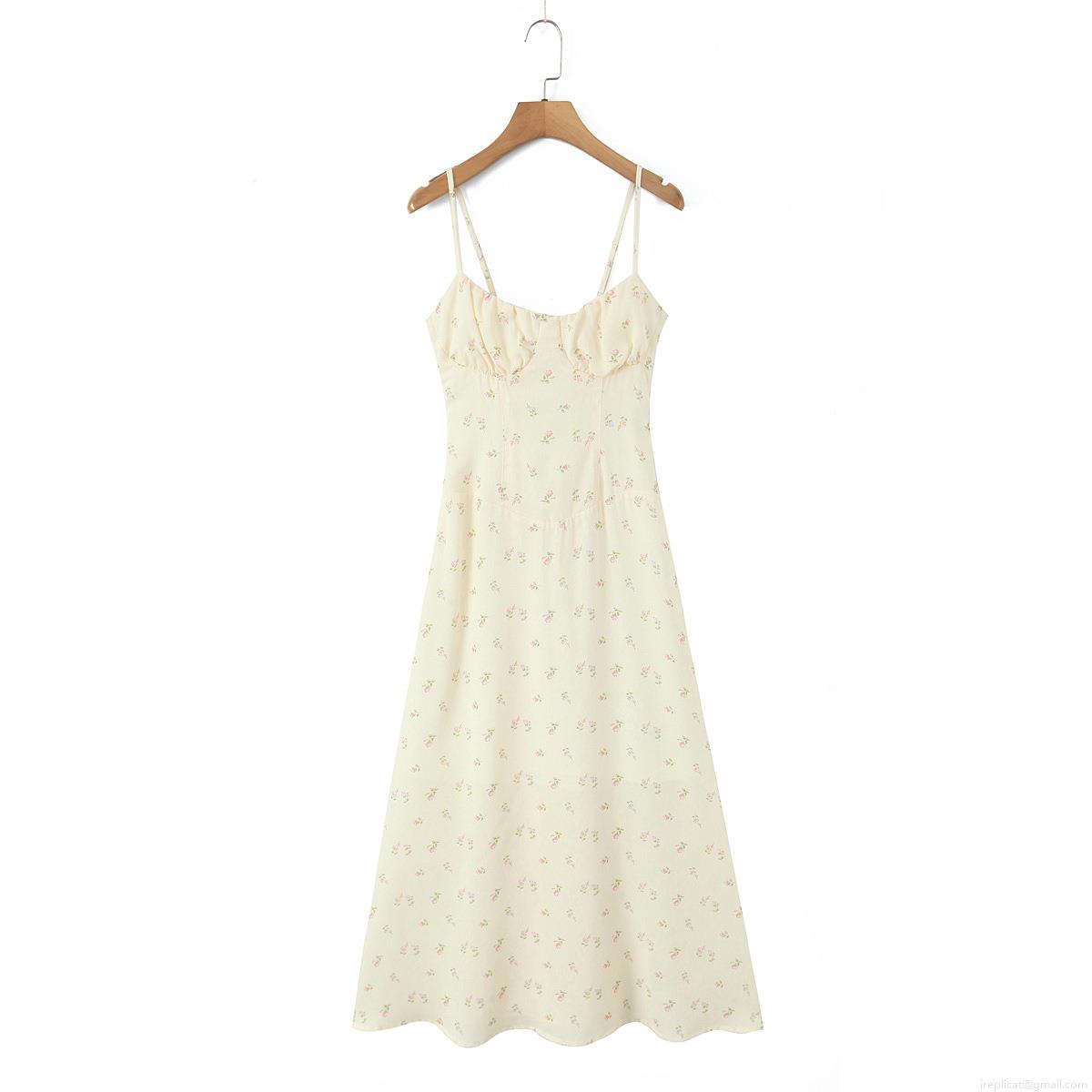 • Women's French Vintage Floral Print Maxi Dress Sexy Boned Bodice Lace-up Back Spaghetti Strap A-Line Long Dress for Summer Vacation