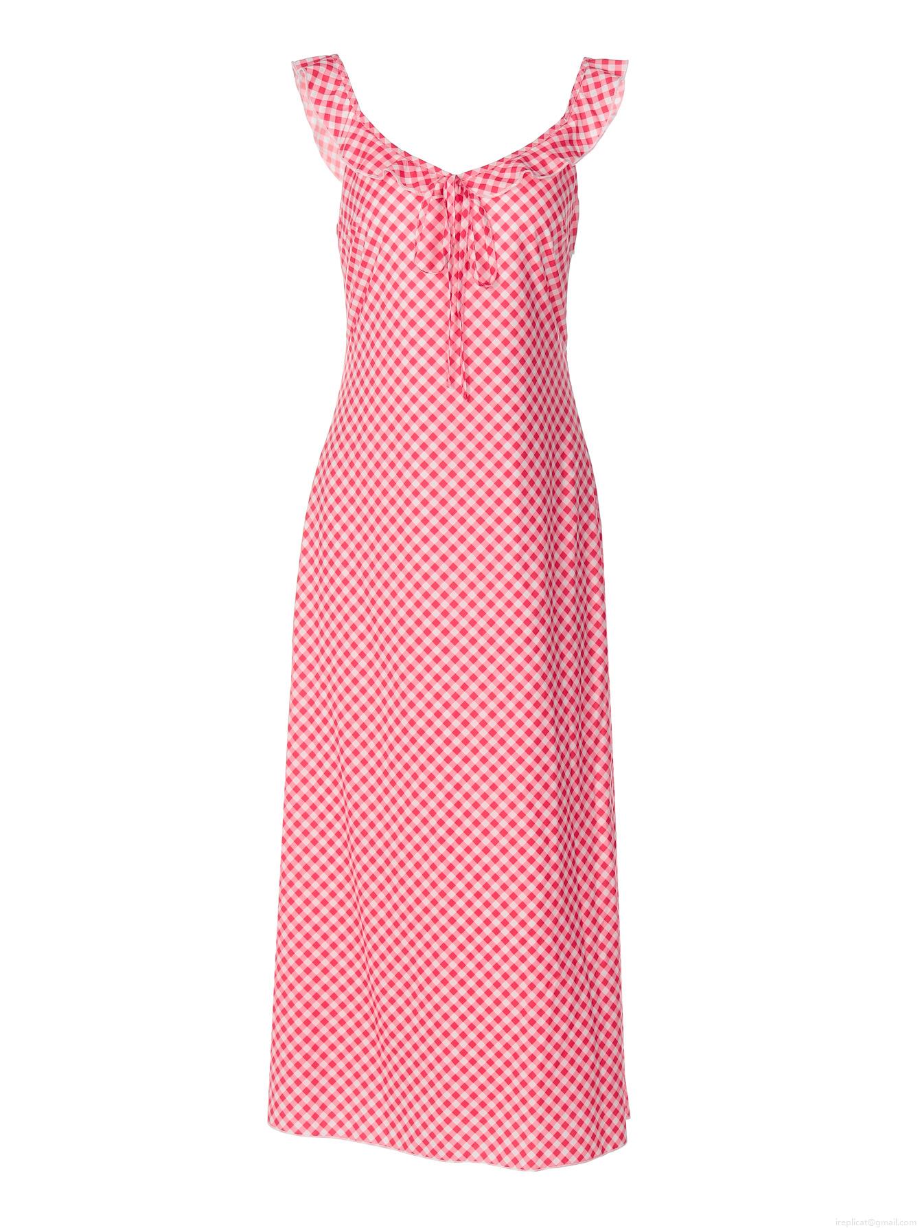 • Women's French Vintage Red Gingham Maxi Dress V-Neck Ruffle Sleeveless Slip Cami Long Dresses Summer Vacation Sexy Backless Beachwear Sundress