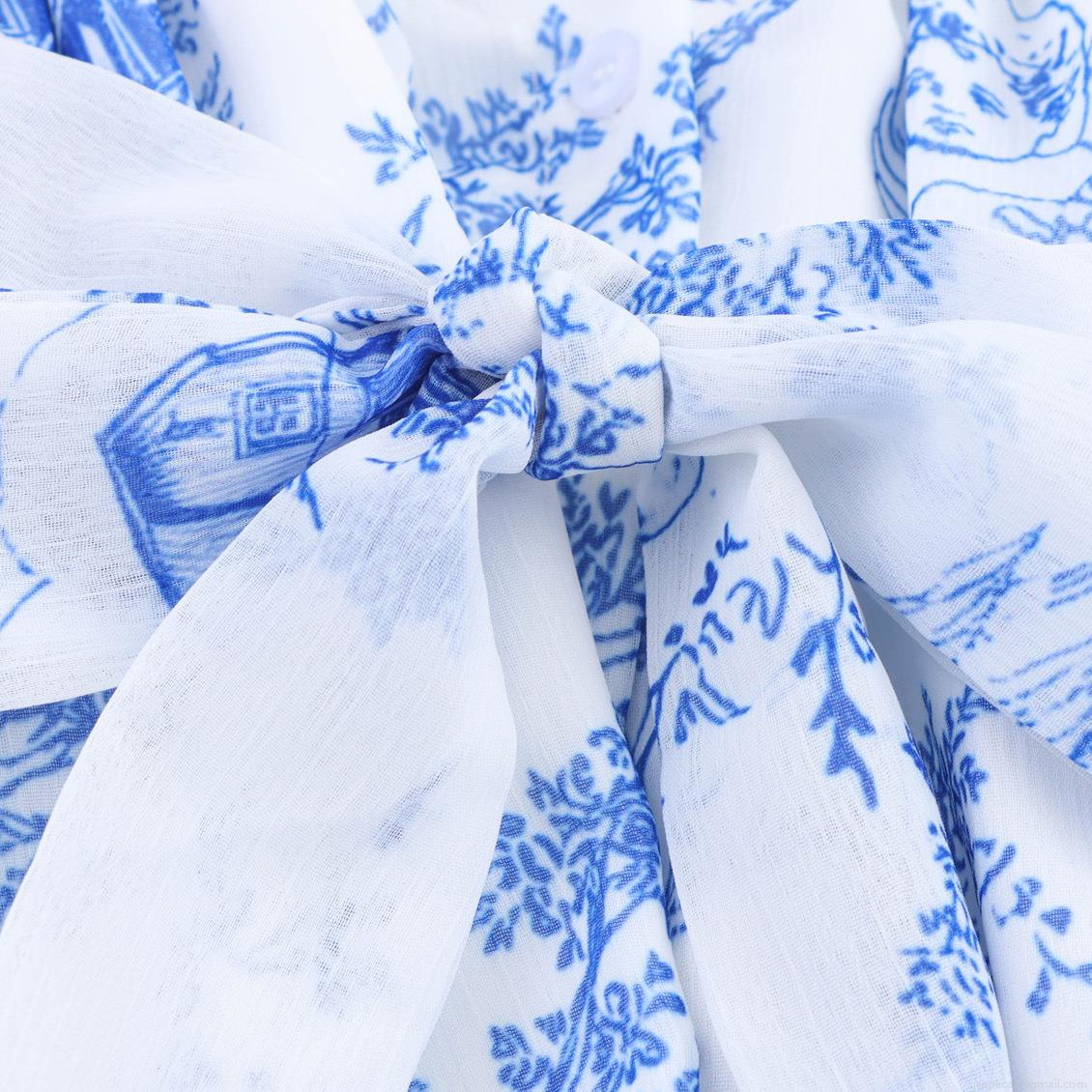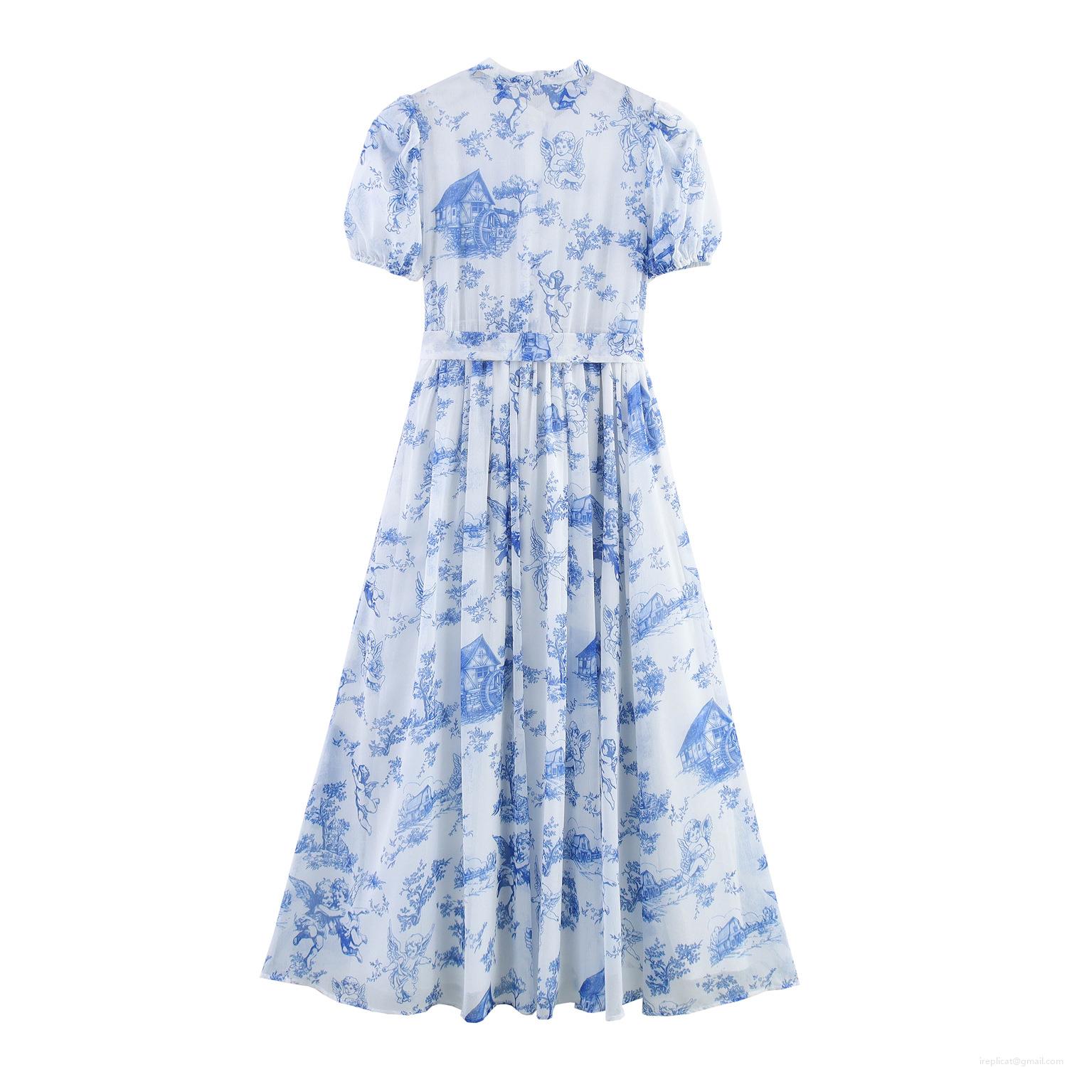 • Women's French Vintage Toile de Jouy Angel Print Maxi Dress Puff Sleeve High Waist Lace-up A-line Long Dress Summer Vacation Elegant Chiffon Gown
