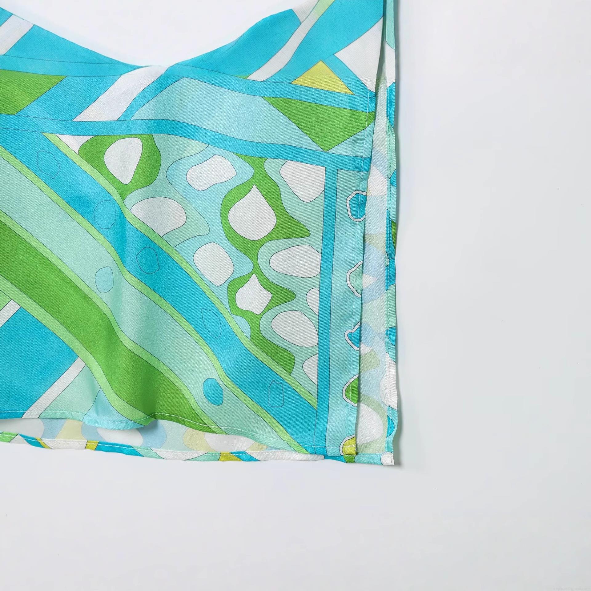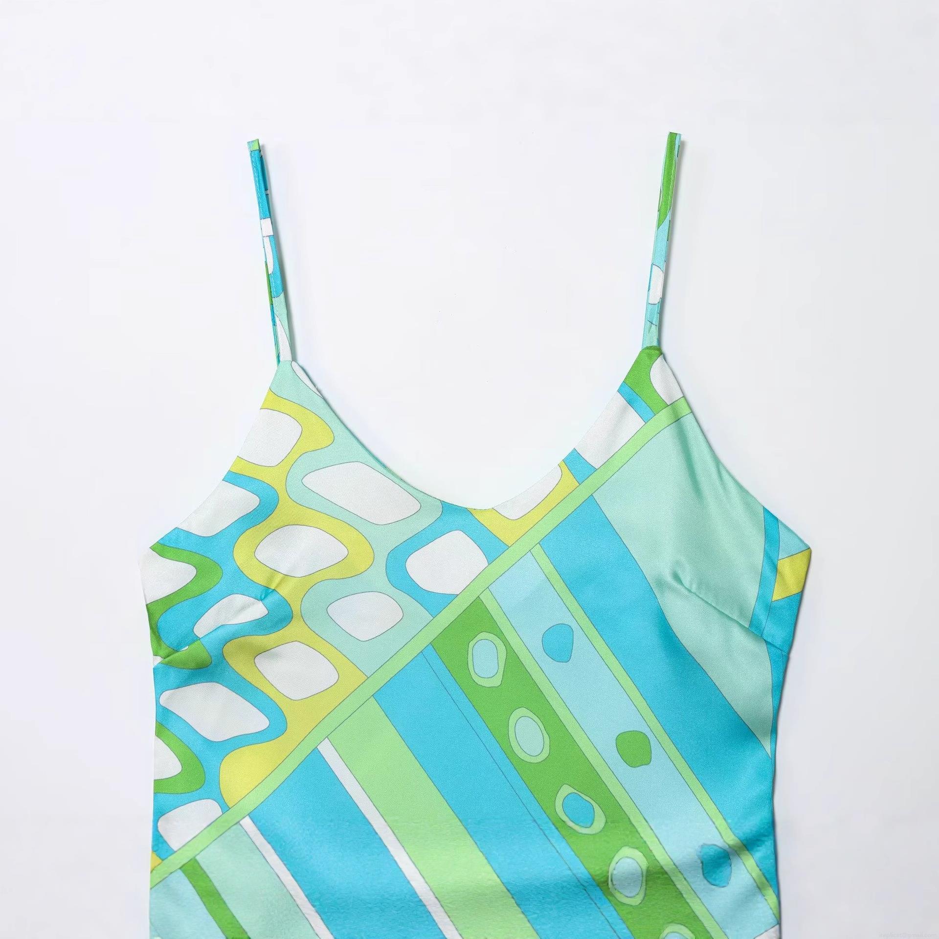 • Women's Geometric Print Camisole Maxi Dress V-Neck Sleeveless Satin Polyester Long Summer Beach Vacation Elegant Party Dress
