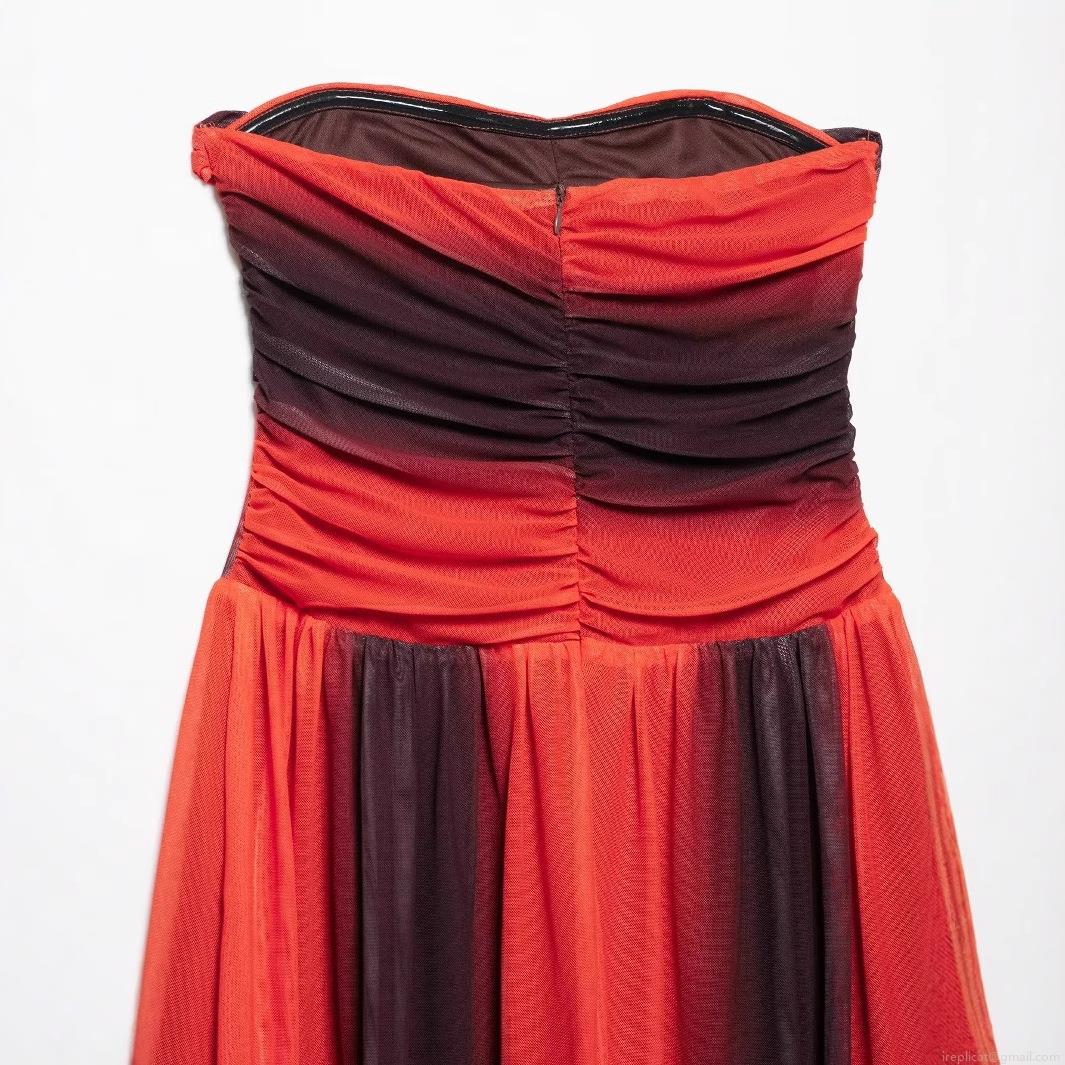 Gradient, Hollow Out, Printing, Backless, Gathering, Strapless, Gradient Stripes
