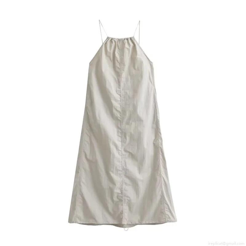• Women's Halter Maxi Dress Sleeveless Backless Loose Fit Polyester Fabric Elegant Summer Vacation Solid Color Long Dress For Women