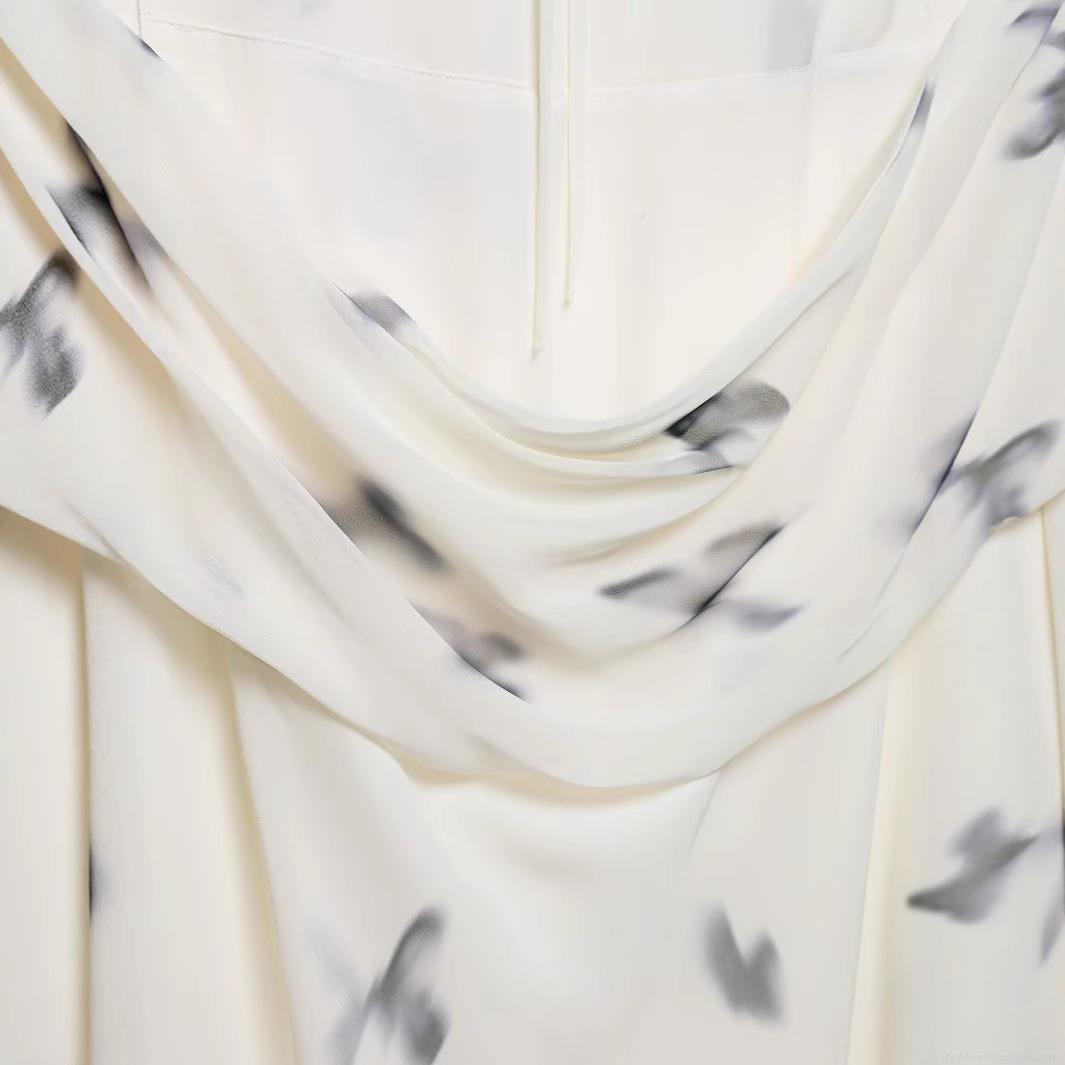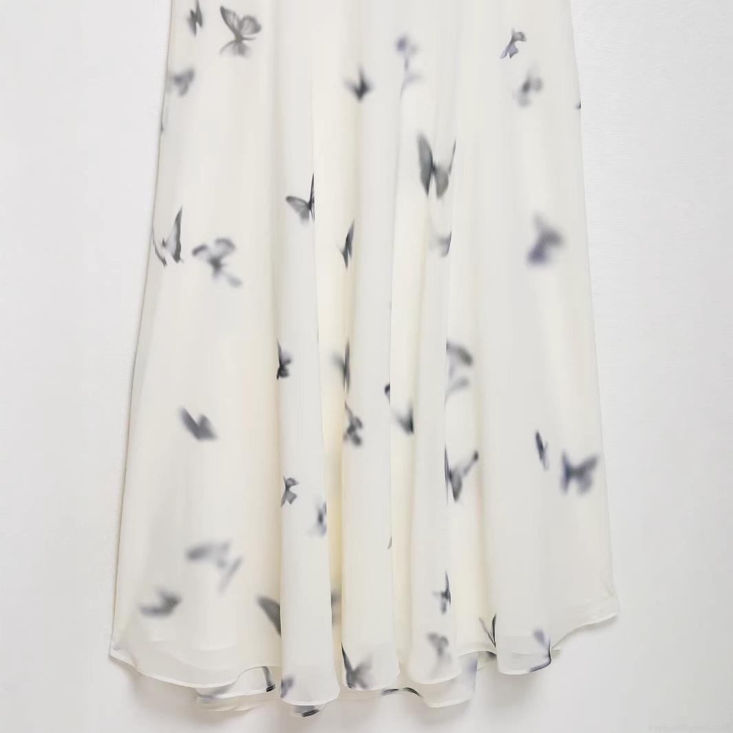 Butterfly, Pleats, Printing, Neckband, Lace, Backless