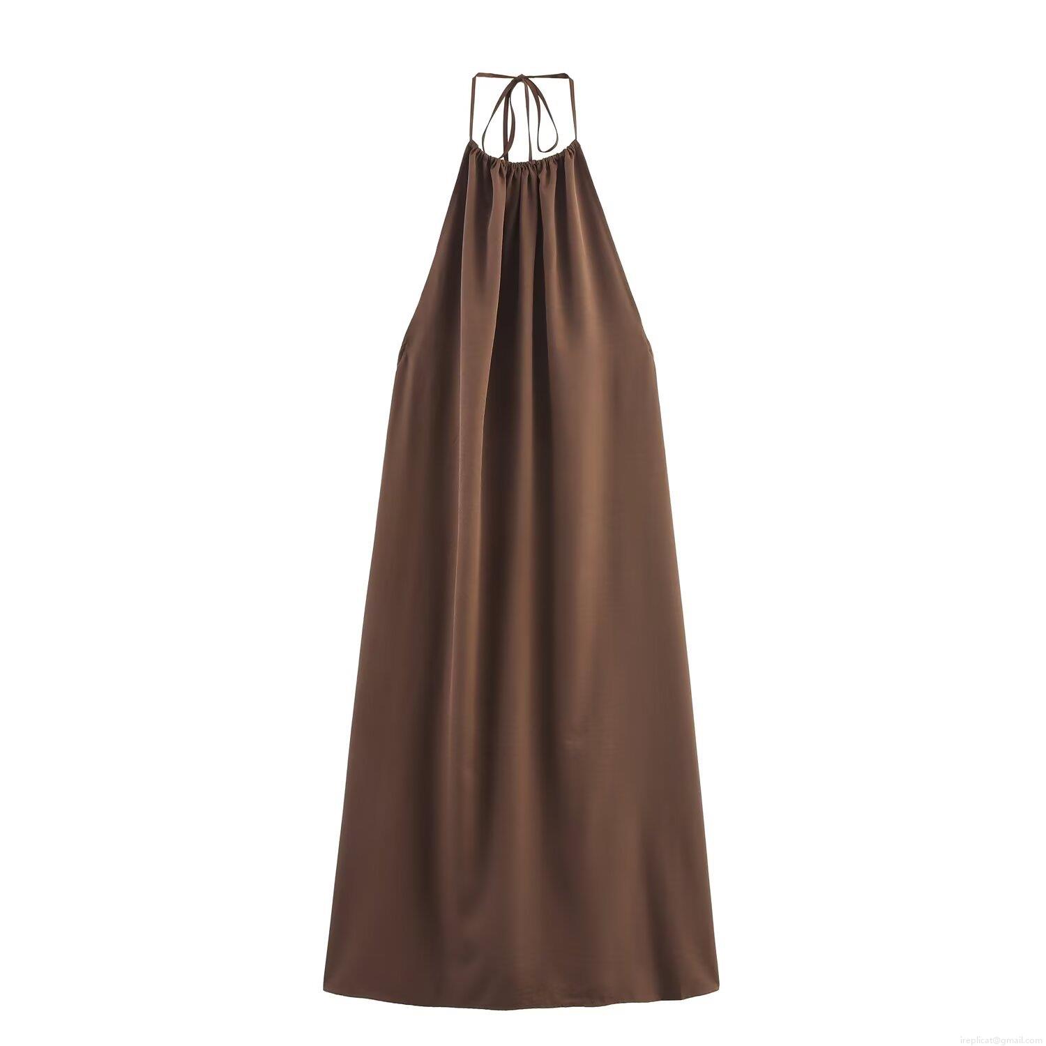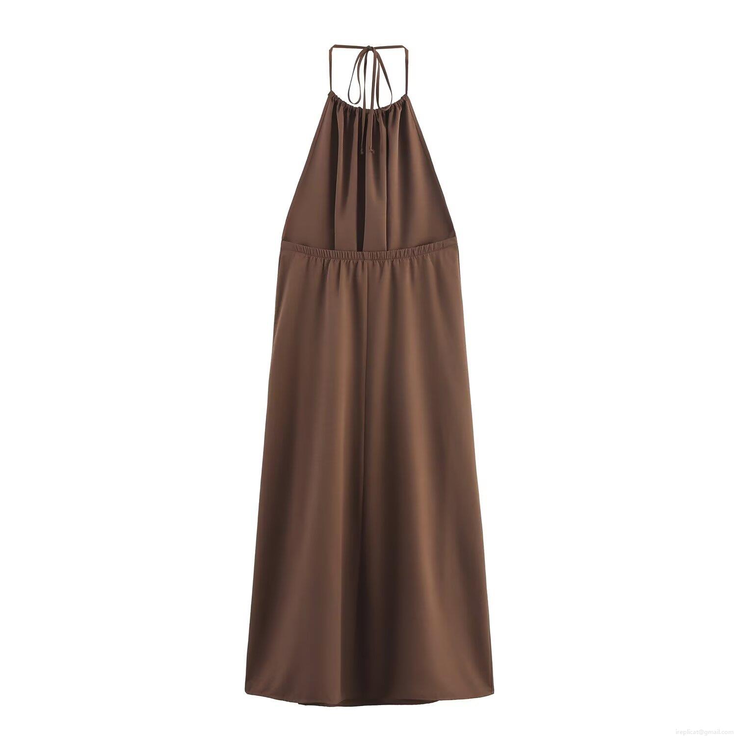 • Women's Halter Neck Backless Satin Maxi Dress Elegant Solid Color Tie-Up A-Line Long Dress for Party Summer Beach Vacation