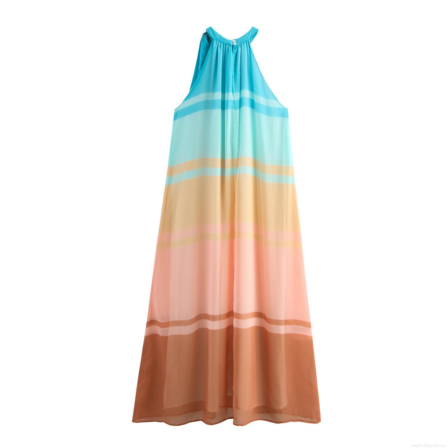 Women's Halter Neck Chiffon Maxi Dress Gradient Striped Sleeveless Summer Beach Resort Style Long Sundress For Women