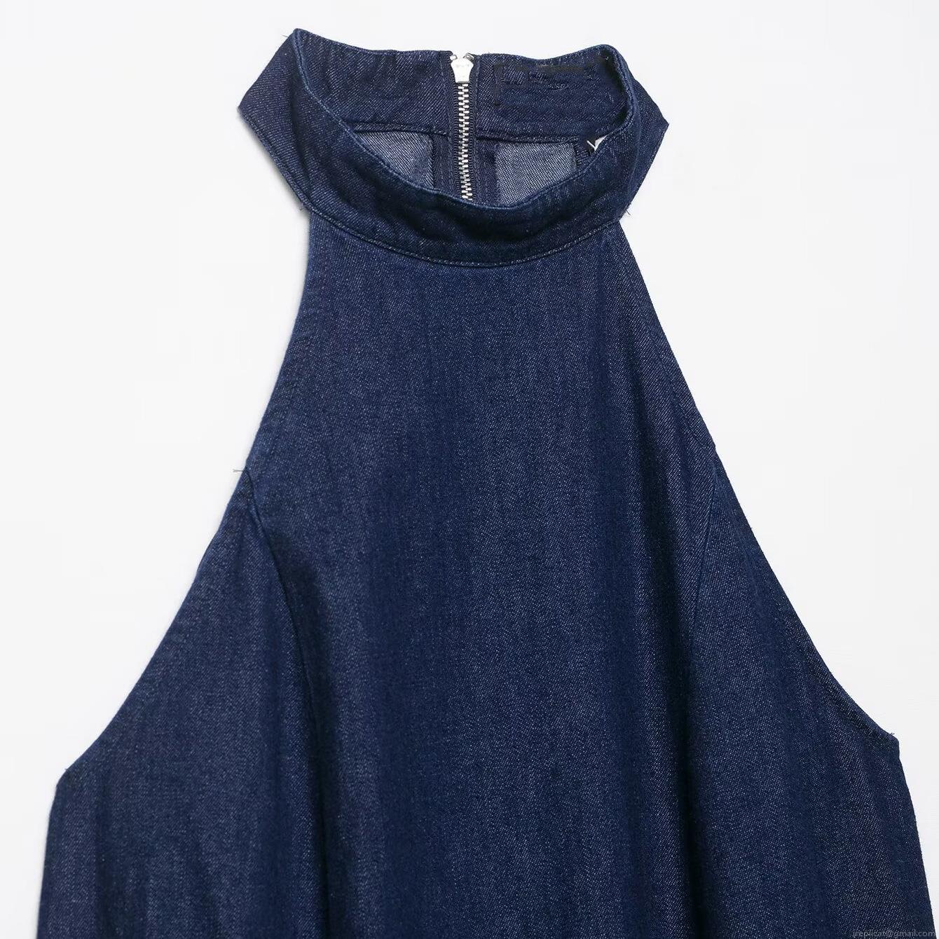 Solid Color, Neckband, Backless, Metal Zipper, Denim Texture