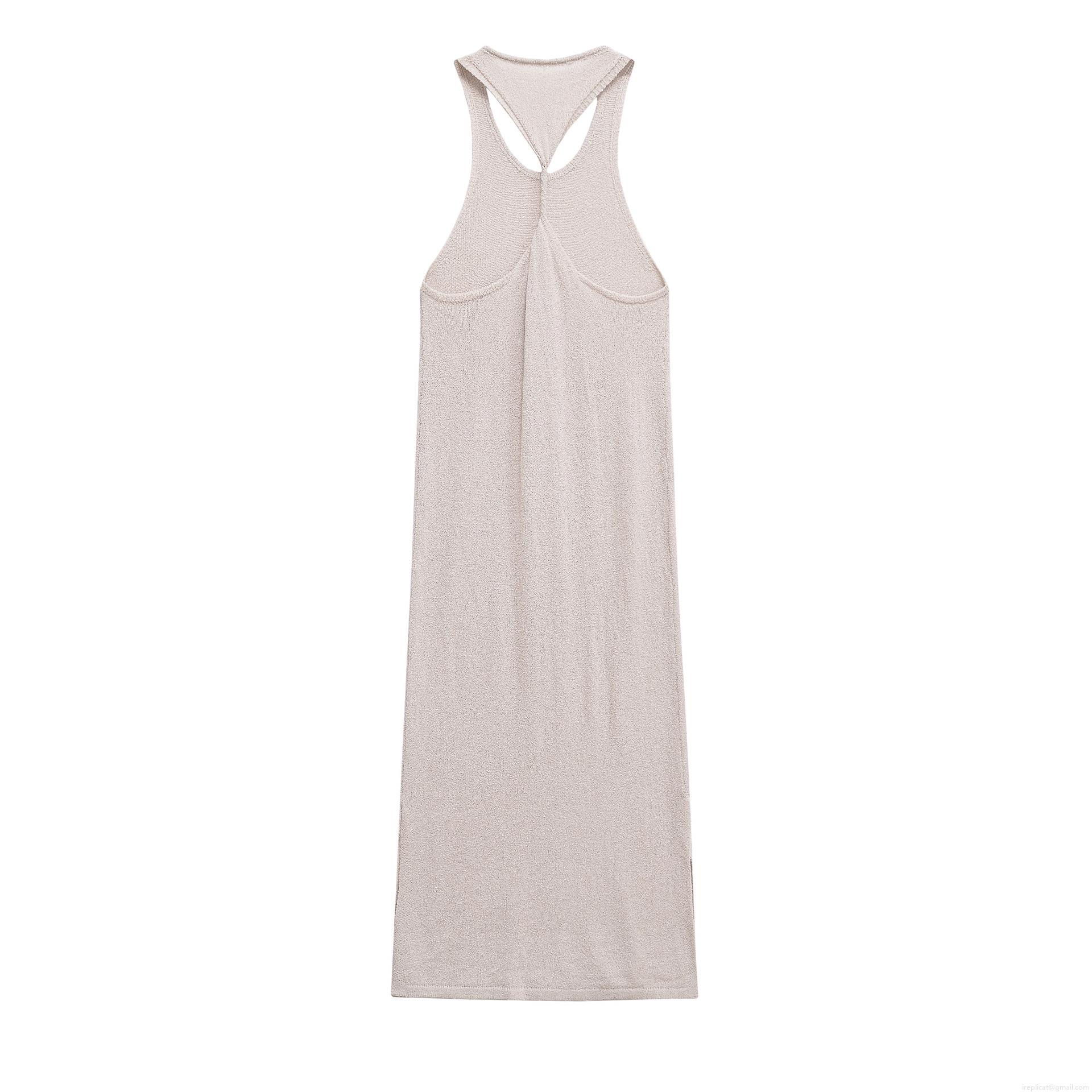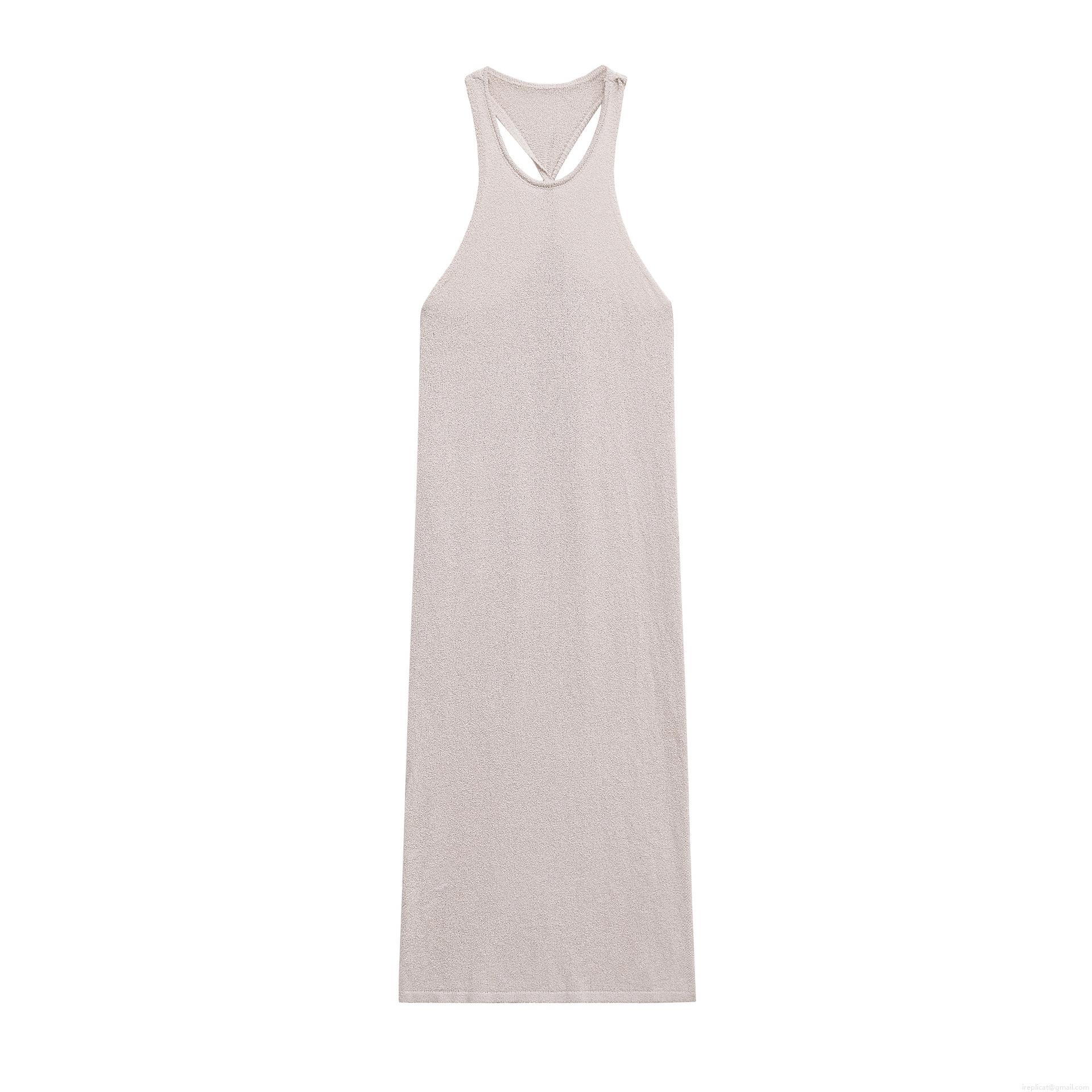 • Women's Halter Neck Knit Maxi Dress Elegant Sleeveless Backless Solid Color Textured Yarn Long Dress For Vacation Summer Beach Party