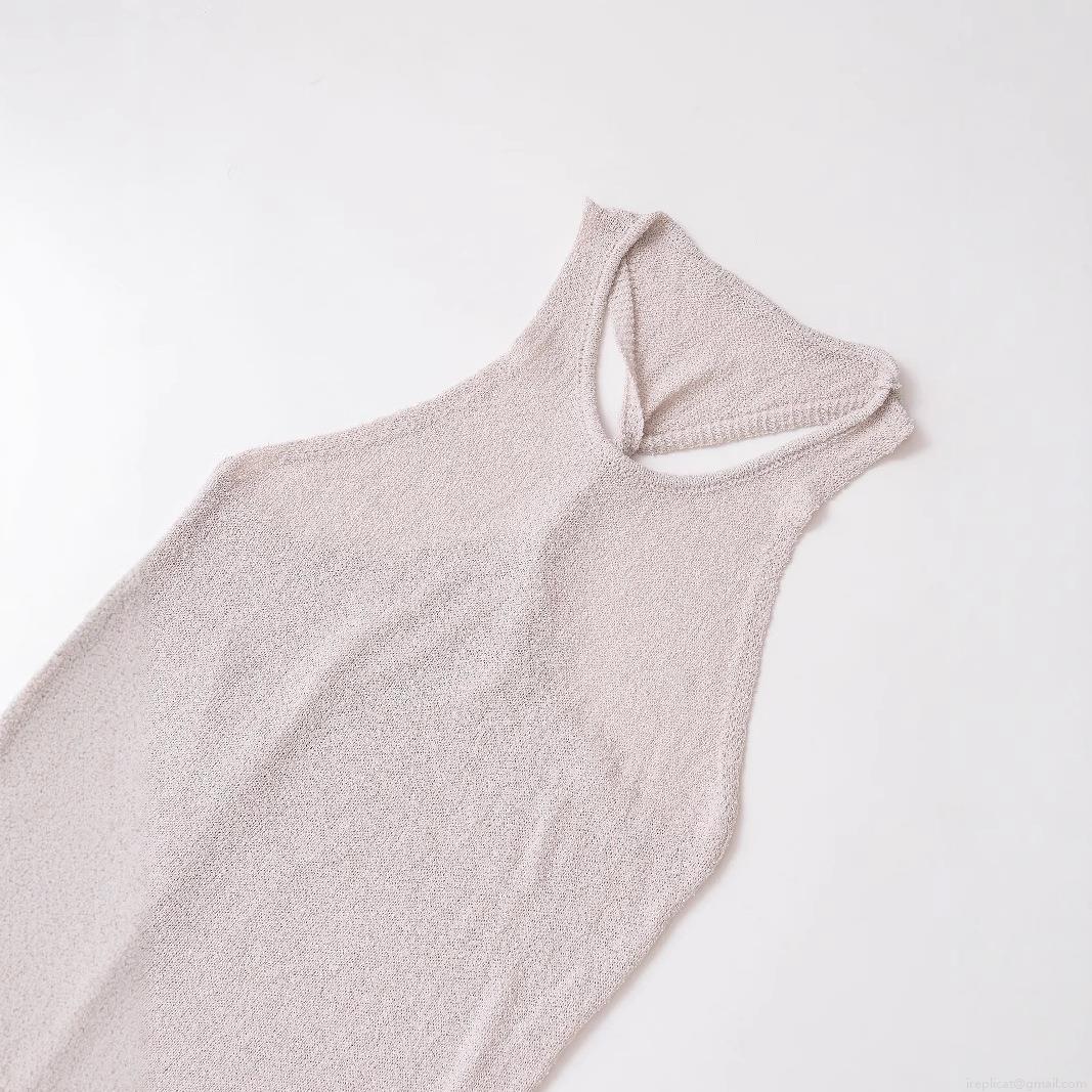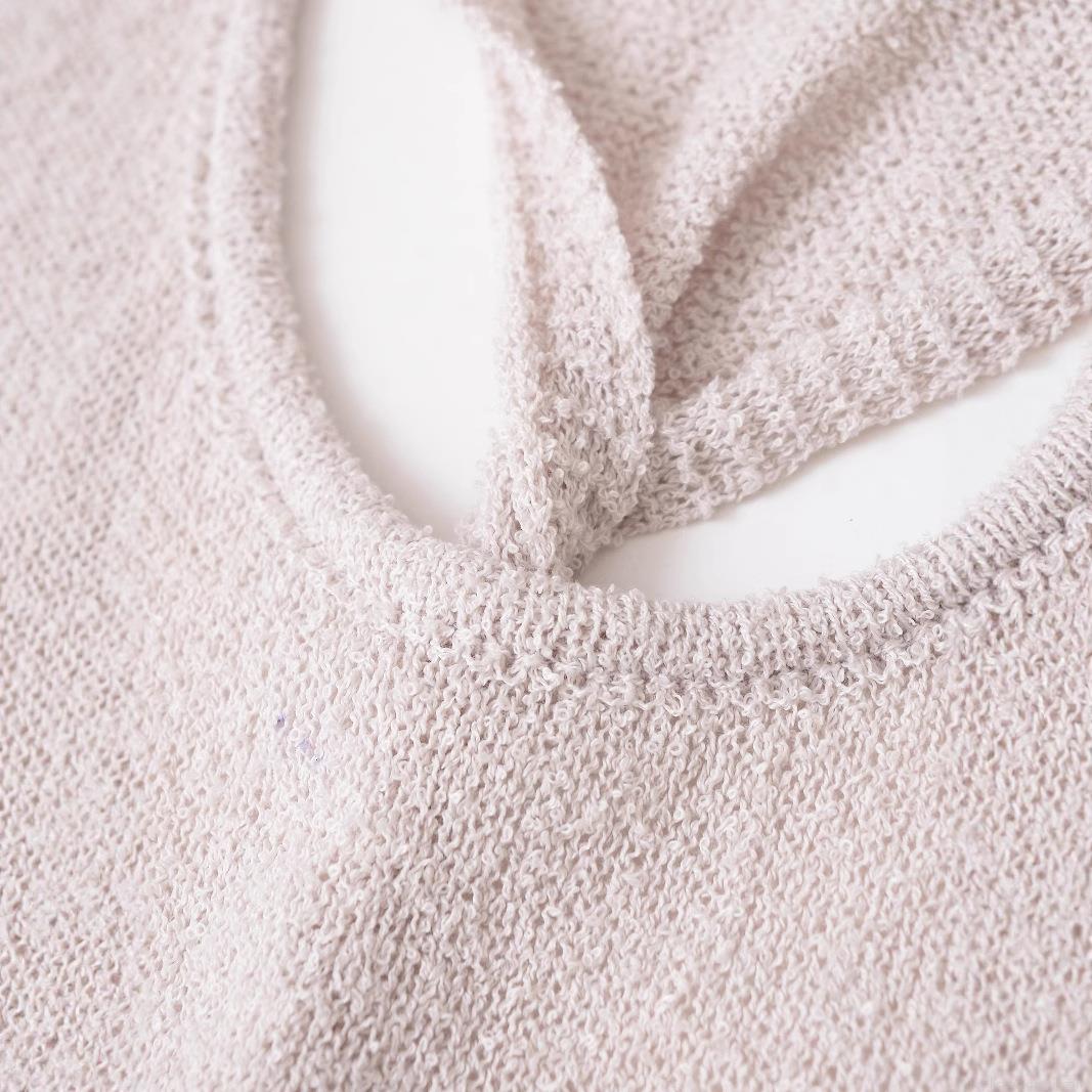 Solid Color, Knitting, Neckband, Backless, Boucle Texture, 工字背