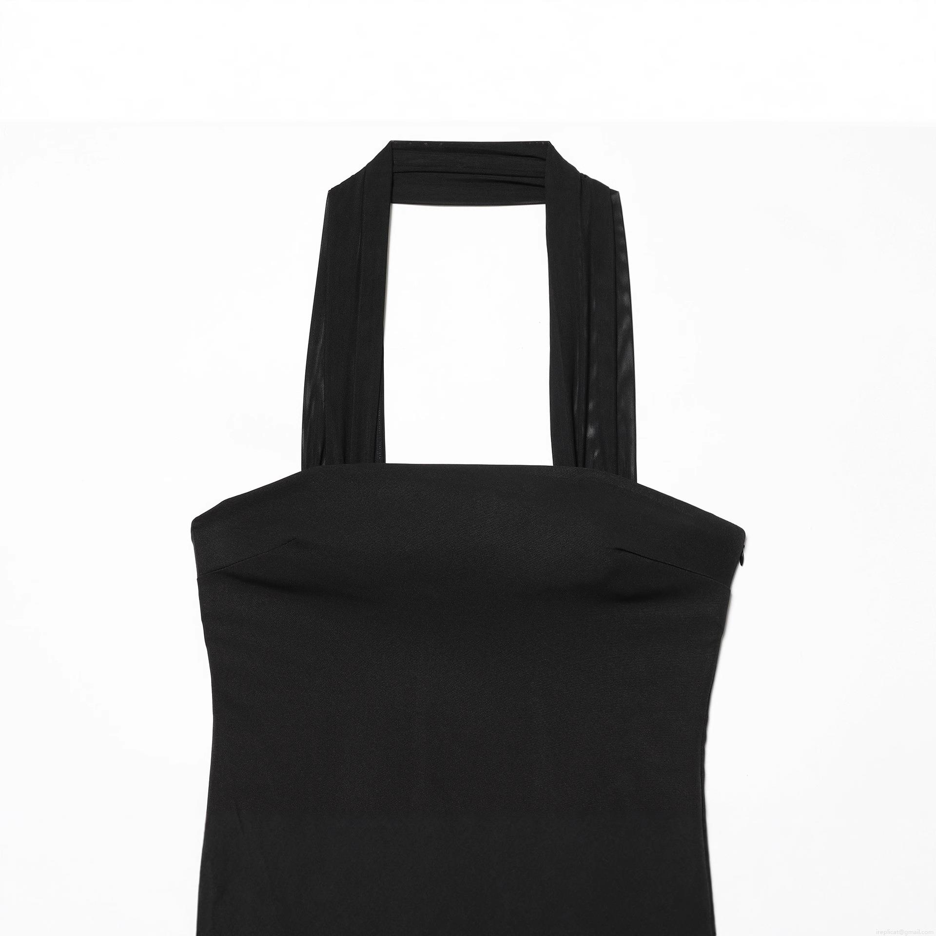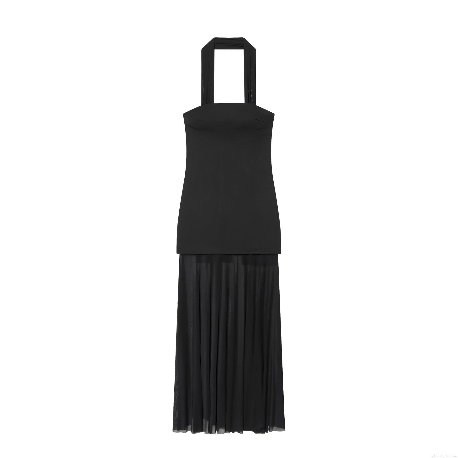 • Women's Halter Neck Maxi Dress Sexy Mesh Patchwork Pleated Sleeveless Backless Elegant Party Long Dress For Ladies