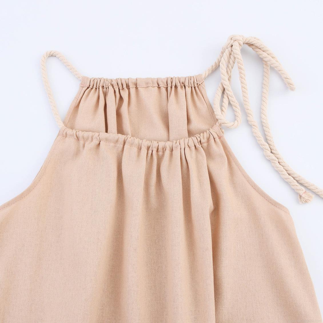 Solid Color, Backless, Splicing Seams, Neckband Design, Hemp Rope Tie