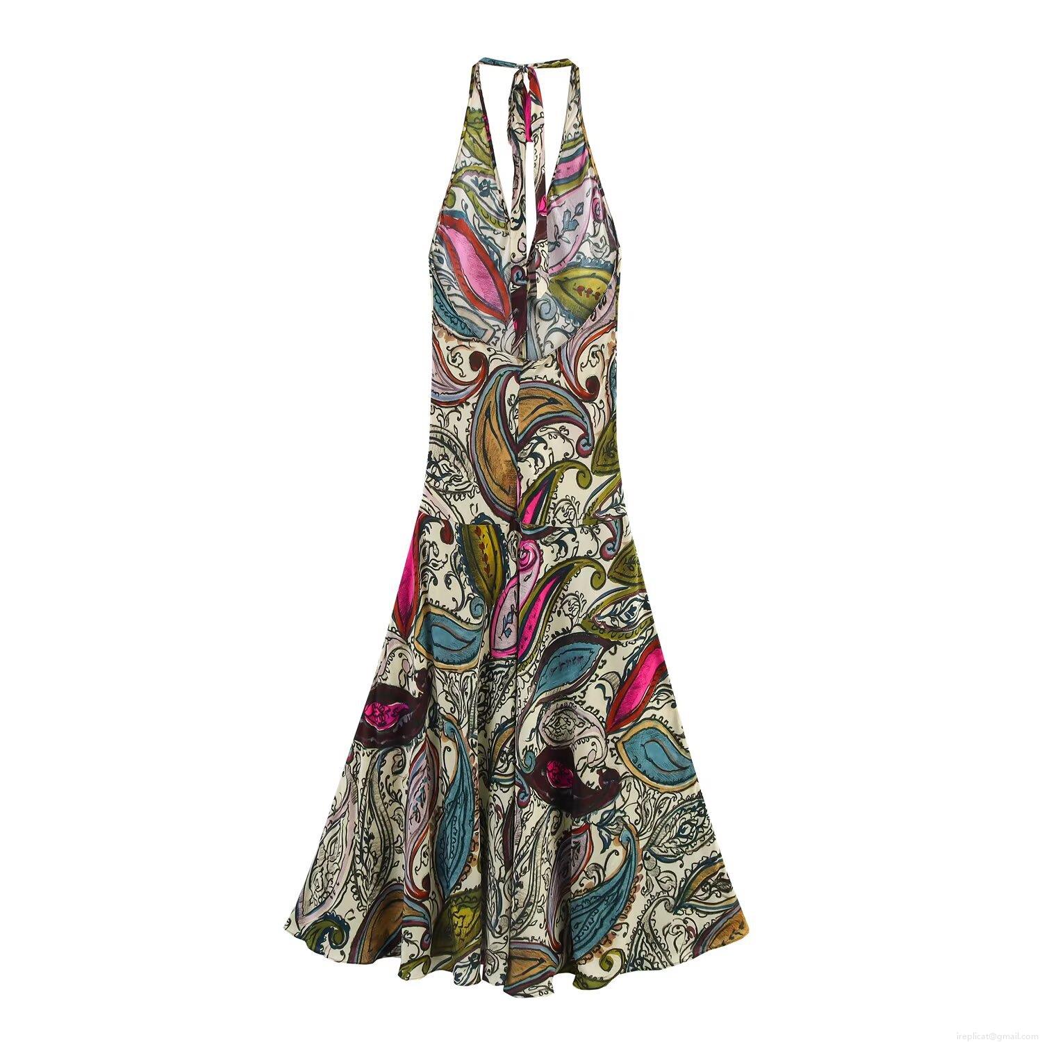 • Women's Halter Neck Paisley Print Maxi Dress Sleeveless V-Neck Backless Boho Style Long Summer Vacation Beach Dress