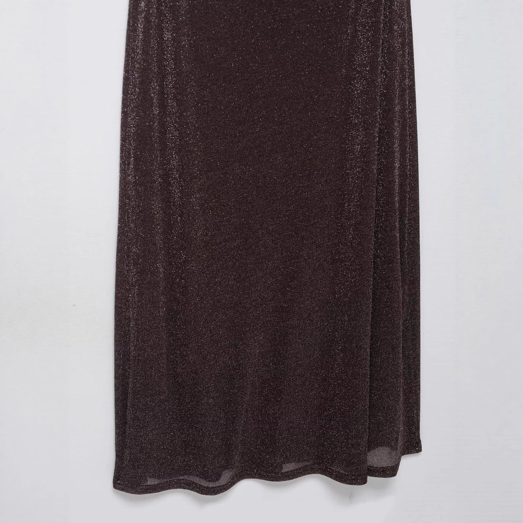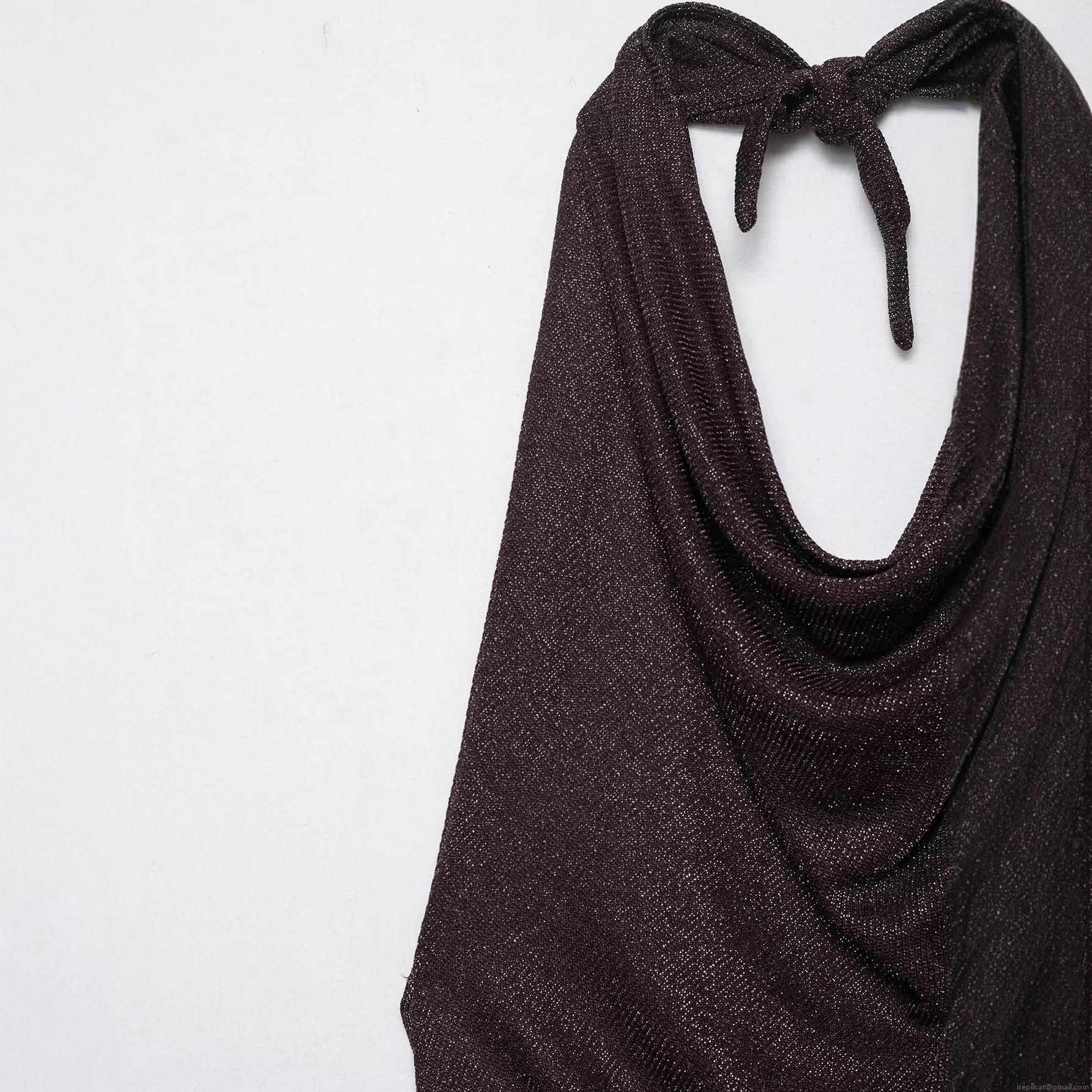 • Women's Halterneck Backless Metallic Lurex Dress Sexy Cowl Neck Tie-up Shiny Polyester Maxi Dress For Evening Party Clubwear Street Style