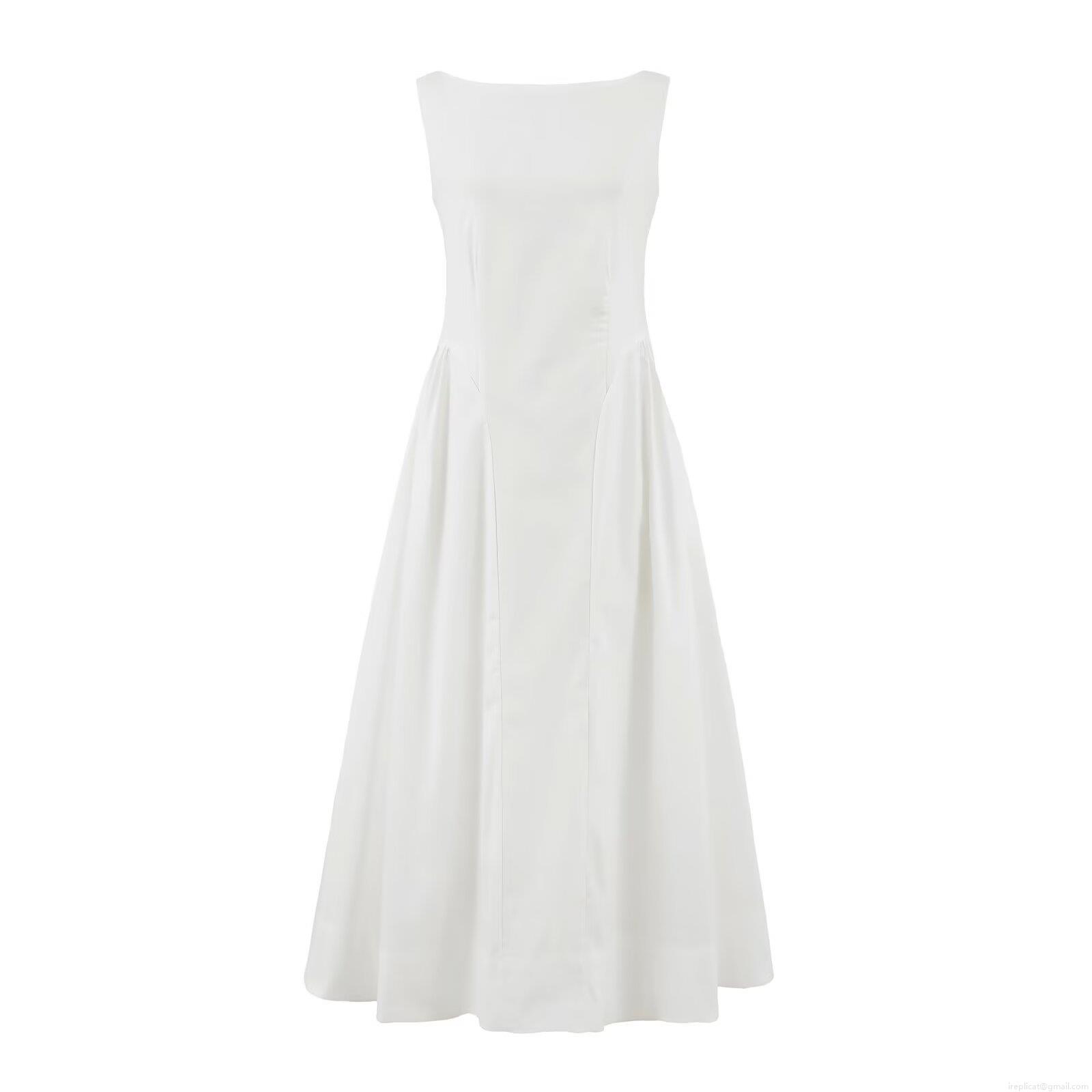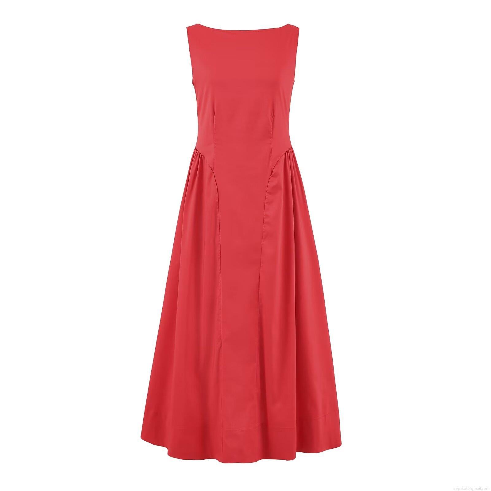 • Women's High Waist Sleeveless Maxi Dress Solid Color Polyester Patchwork A-Line Long Dress Fashion Streetwear Party Sundress